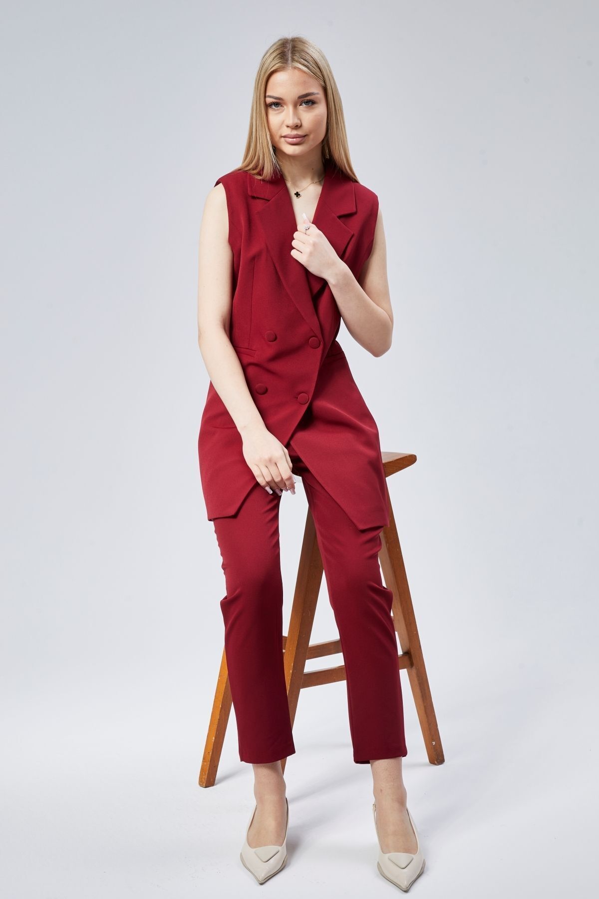 Kadın Uzun Kruvaze Dokuma Yelek Kadın Uzun Kruvaze Dokuma Yelek 46145 XL