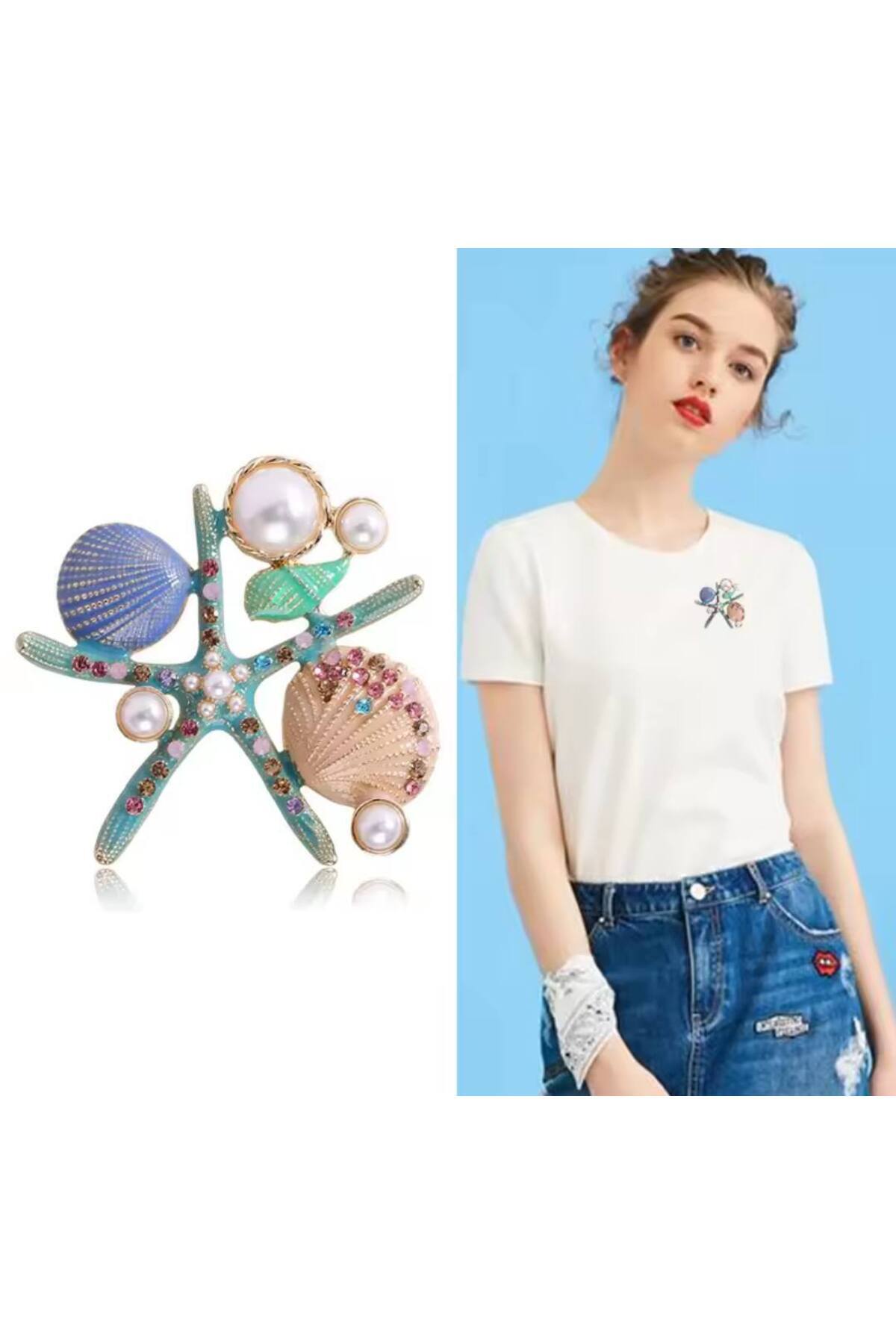 İnci Detay Deniz Yıldızı Kabuğu Kadın Broş Ebat: 5,5*5,5 cm İnci Detay Deniz Yıldızı Kabuğu Kadın Broş Ebat: 5,5*5,5 cm ESJ99074 تک سایز