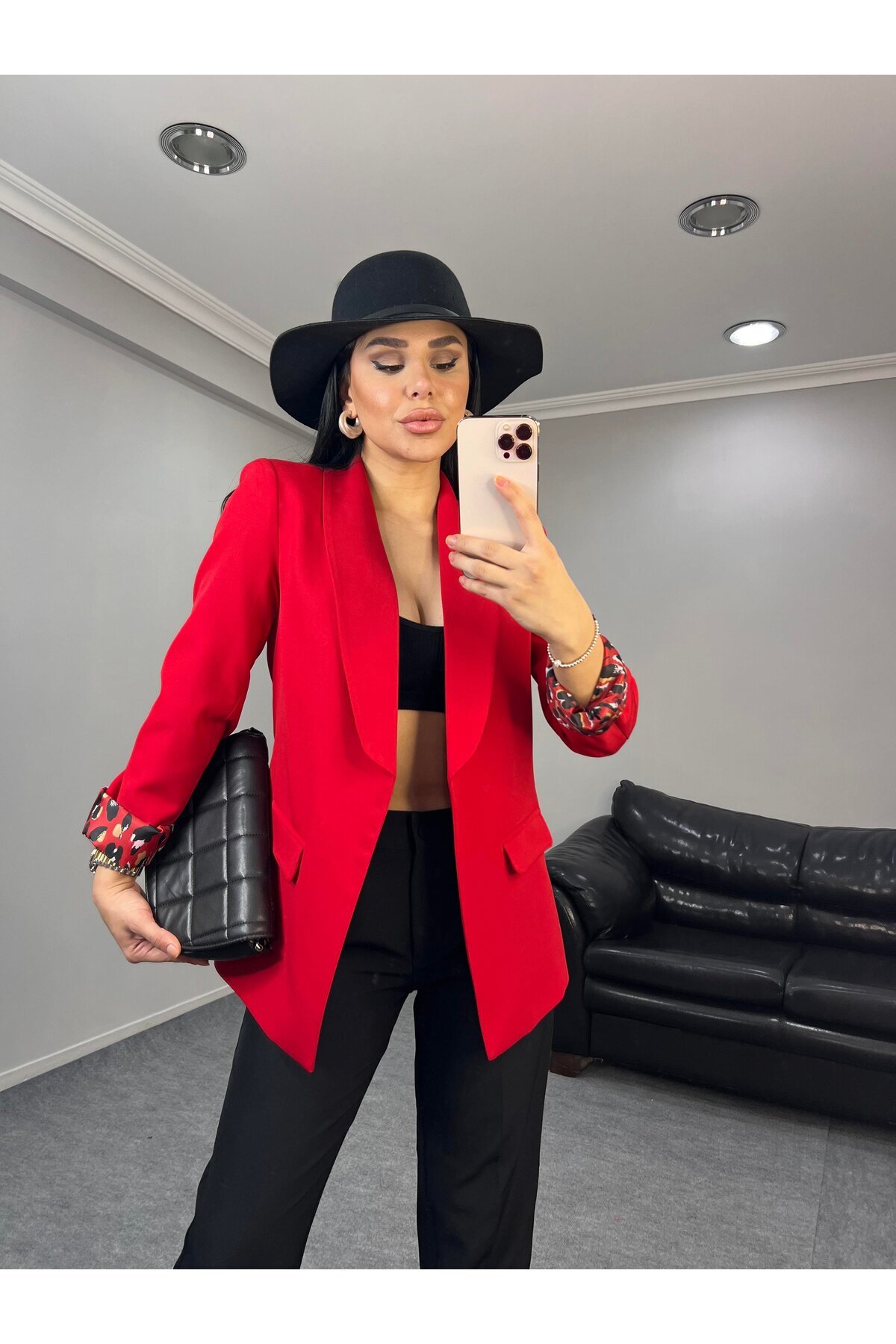 Kadın Şal Yaka Düğmesiz Cepli Leopar Desen Astarlı Katlanabilir Kol Blazer Ceket Kadın Şal Yaka Düğmesiz Cepli Leopar Desen Astarlı Katlanabilir Kol Blazer Ceket Bella-3046t 42