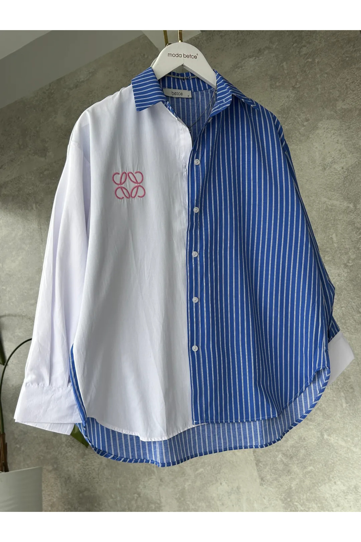 çizgili dokulu kadın oversize gömlek çizgili dokulu kadın oversize gömlek çizgili11 L
