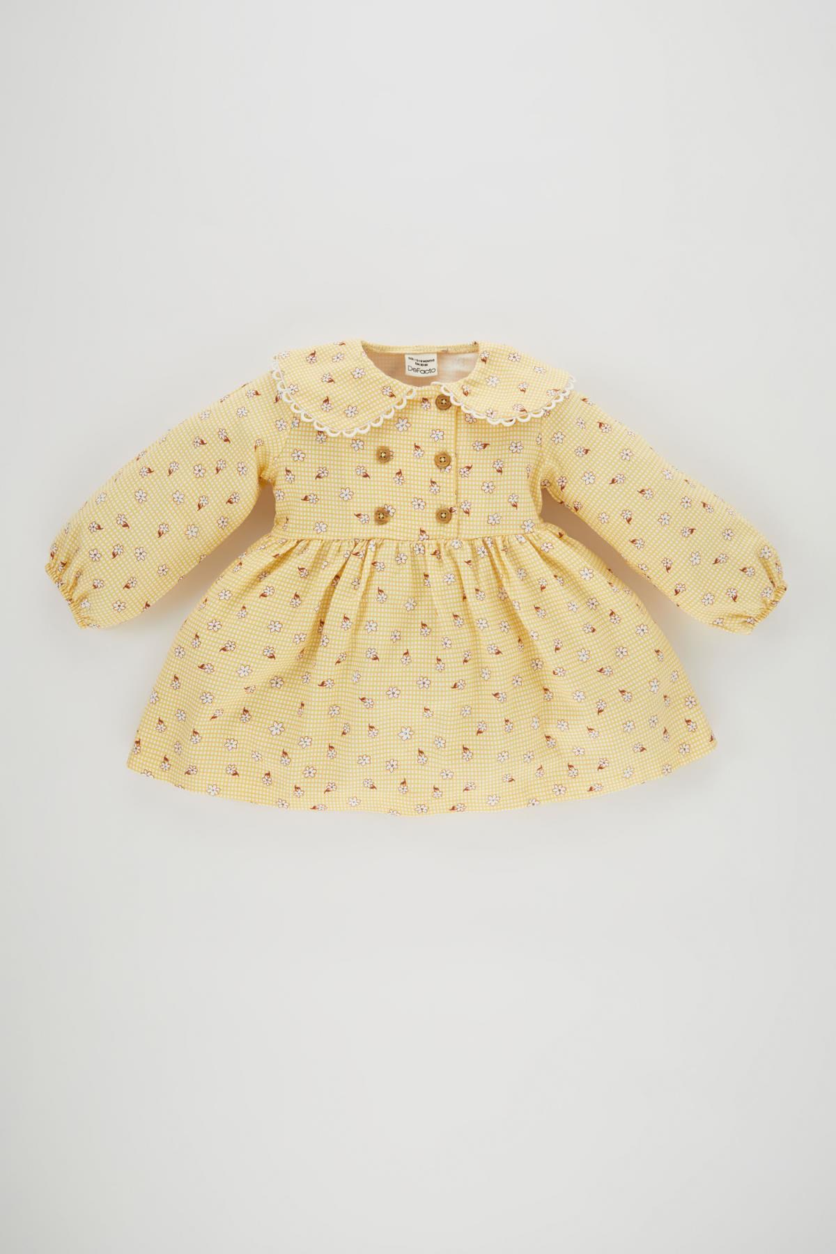 Kız Bebek Sarı Bebe Yakalı Puantiyeli Elbise Kız Bebek Sarı Bebe Yakalı Puantiyeli Elbise 15267 18-24 AY