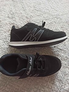 Çocuk Siyah Beyaz Bağcıklı Tek Cırtlı Esnek Hafif Suni Deri Unisex Sneaker M Serisi Spor Ayakkabı Çocuk Siyah Beyaz Bağcıklı Tek Cırtlı Esnek Hafif Suni Deri Unisex Sneaker M Serisi Spor Ayakkabı MM077Ç 35