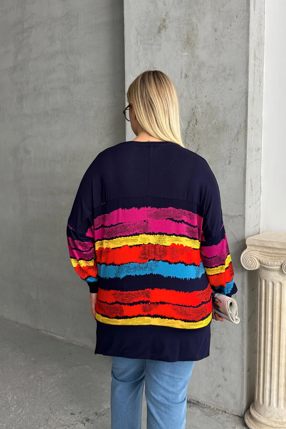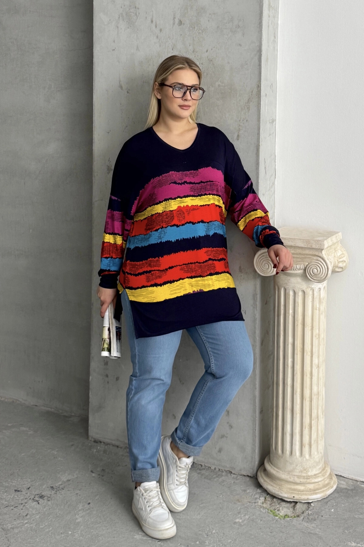 Büyük Beden V Yaka Çizgili Yanları Yırtmaçlı Uzun Kollu Bluz 303118 Büyük Beden V Yaka Çizgili Yanları Yırtmaçlı Uzun Kollu Bluz 303118 BYK-25K-303118 58-60