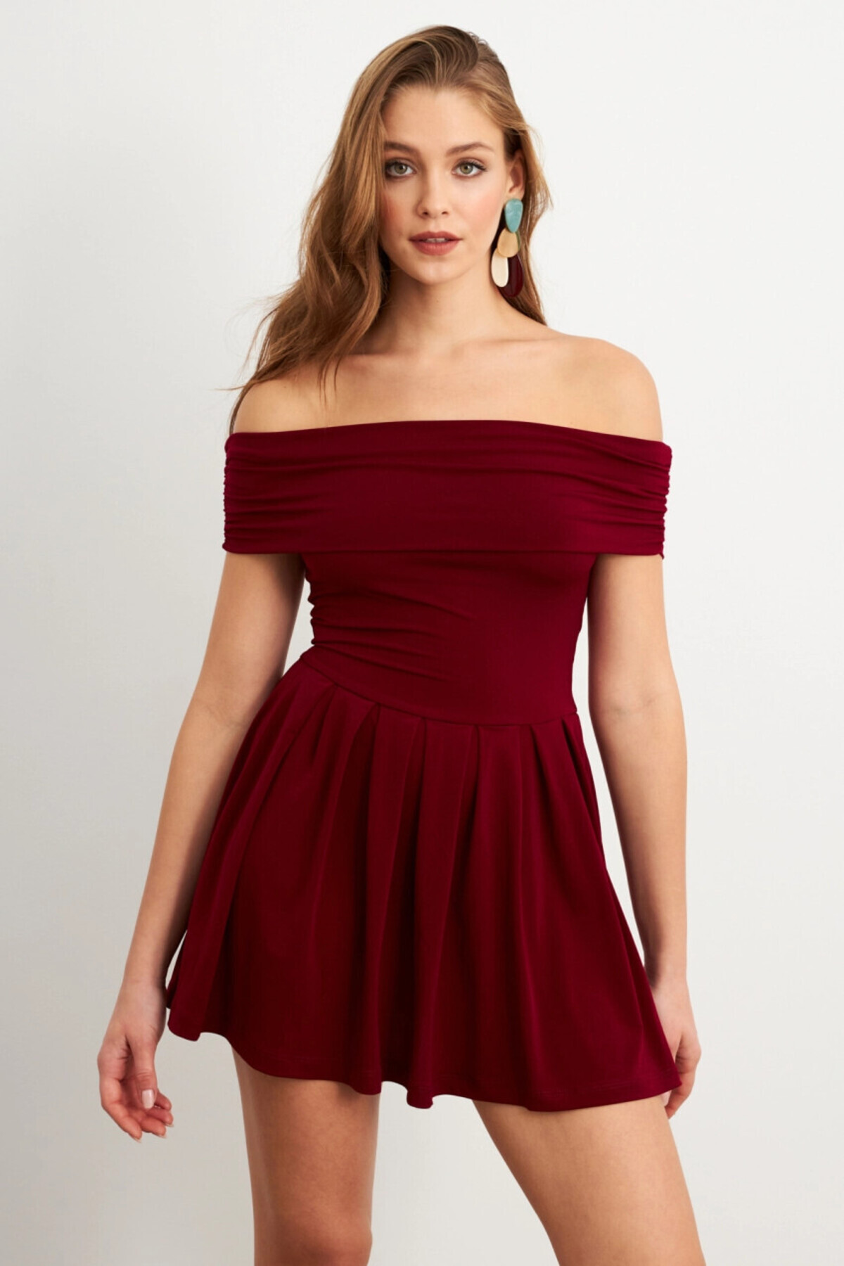 Kadın Kırmızı V Yaka Mini Elbise LİK17 Kadın Kırmızı V Yaka Mini Elbise LİK17 L
