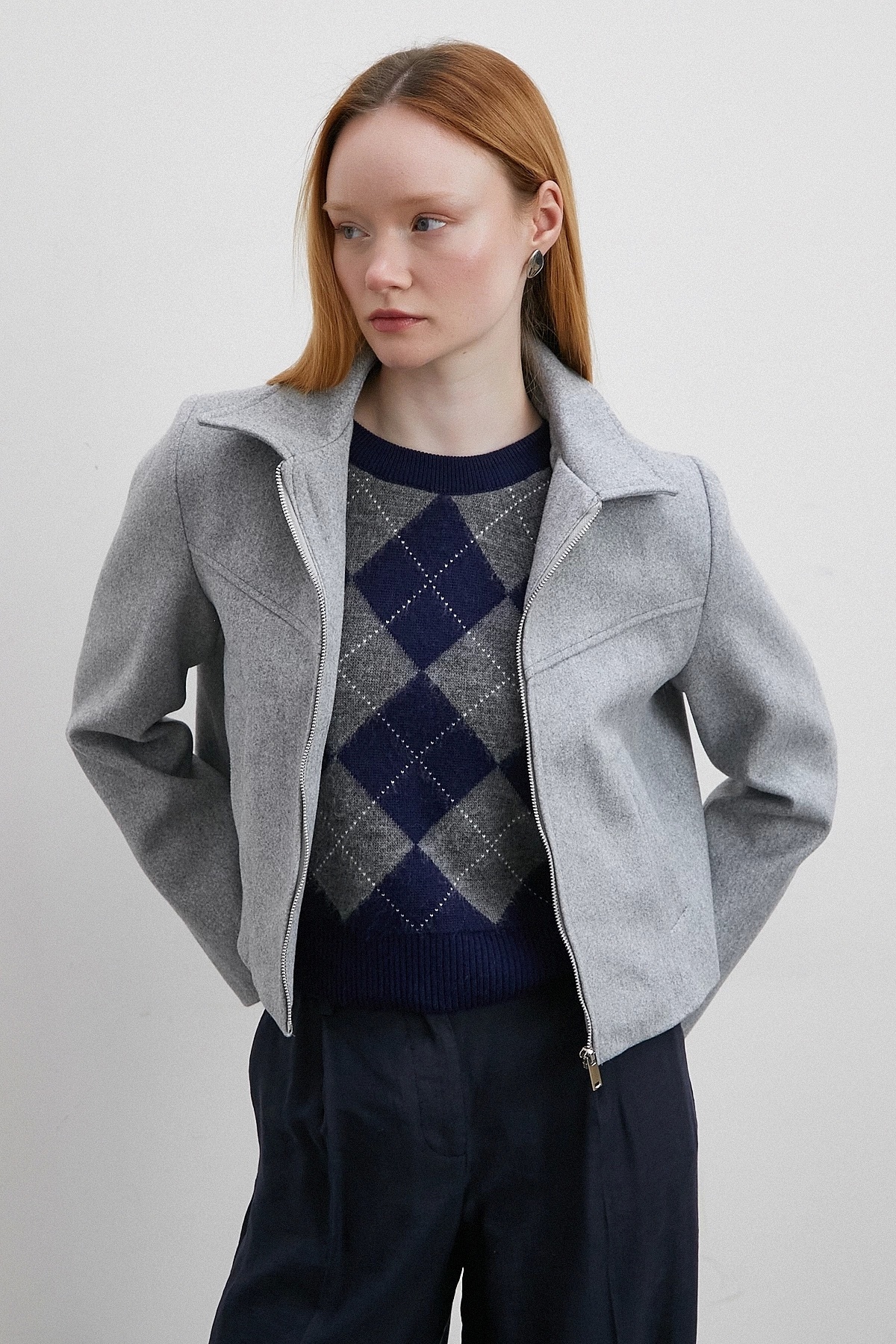 Fermuarlı Kaşe Ceket Gri Fermuarlı Kaşe Ceket Gri TLY24W500502 L
