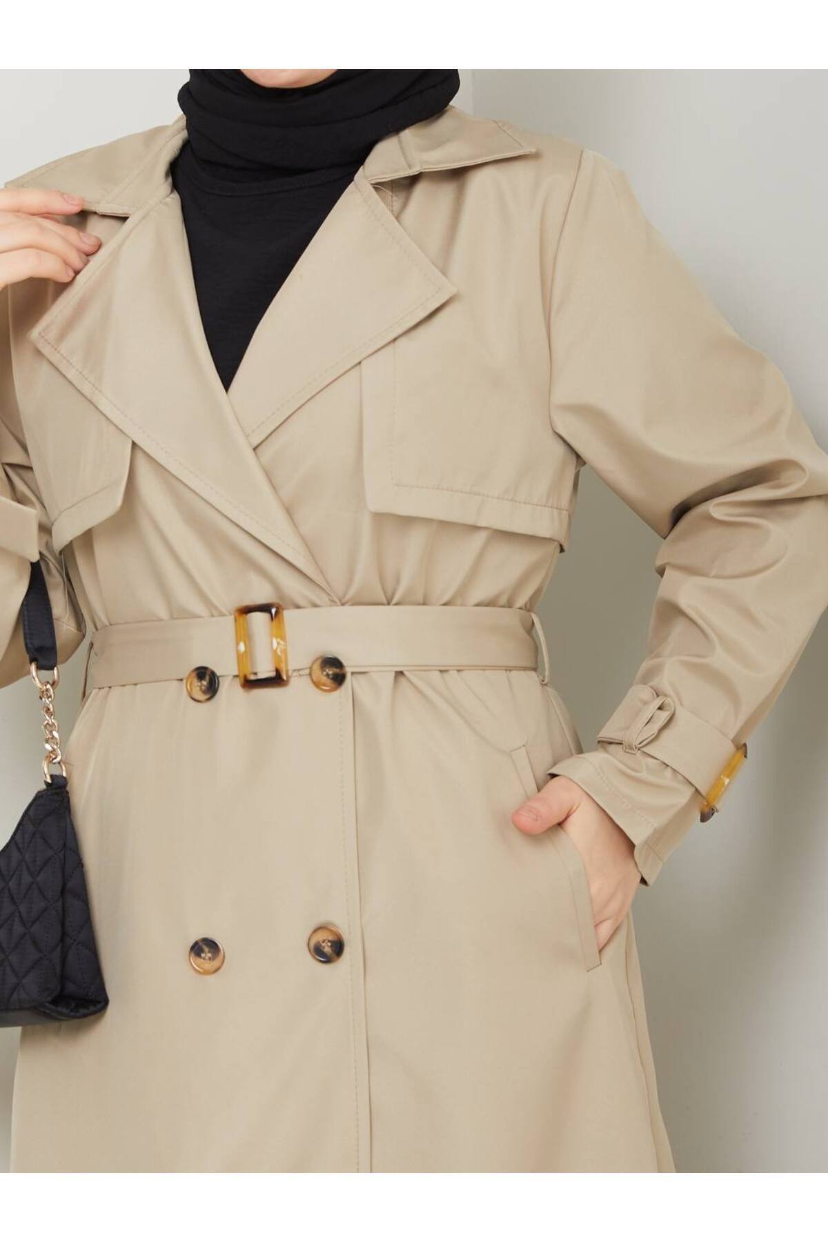 Tesettürlü Su Geçirmez Kruvaze Yaka Kemerli Tam Boy Trençkot RC1403056 Tesettürlü Su Geçirmez Kruvaze Yaka Kemerli Tam Boy Trençkot RC1403056 42