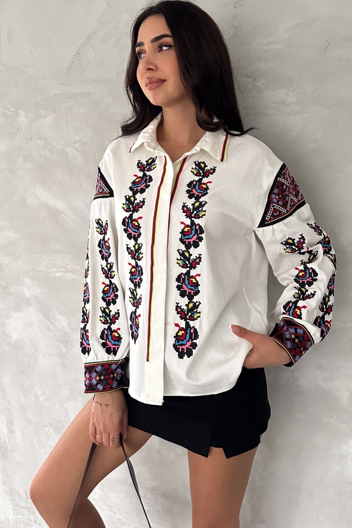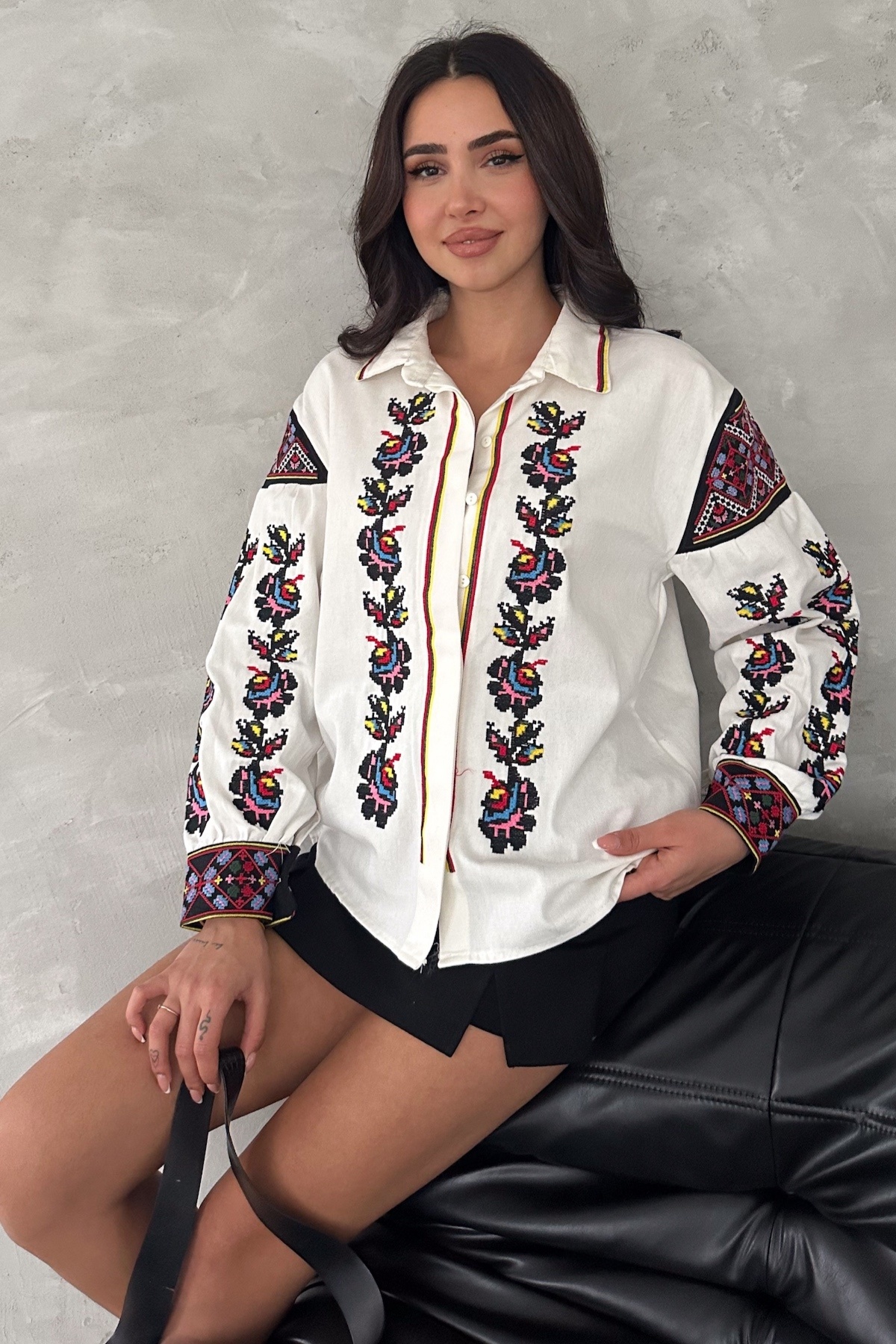 Kadın Beyaz Komple Nakış İşlemeli Ceket Kadın Beyaz Komple Nakış İşlemeli Ceket 5899 L