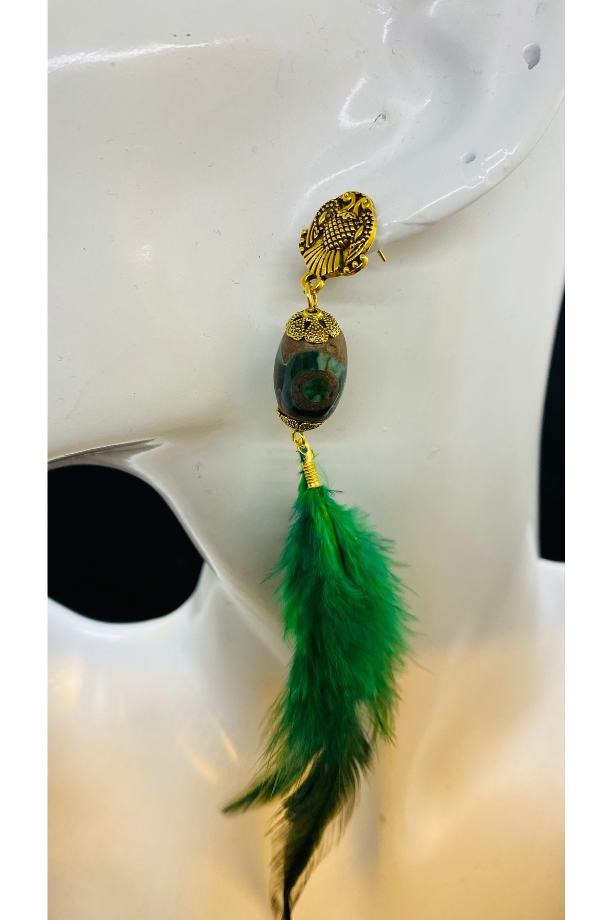 El yapımı etnik Tibet akik taşı tekli tüy kadın küpe El yapımı etnik Tibet akik taşı tekli tüy kadın küpe 3084 تک سایز
