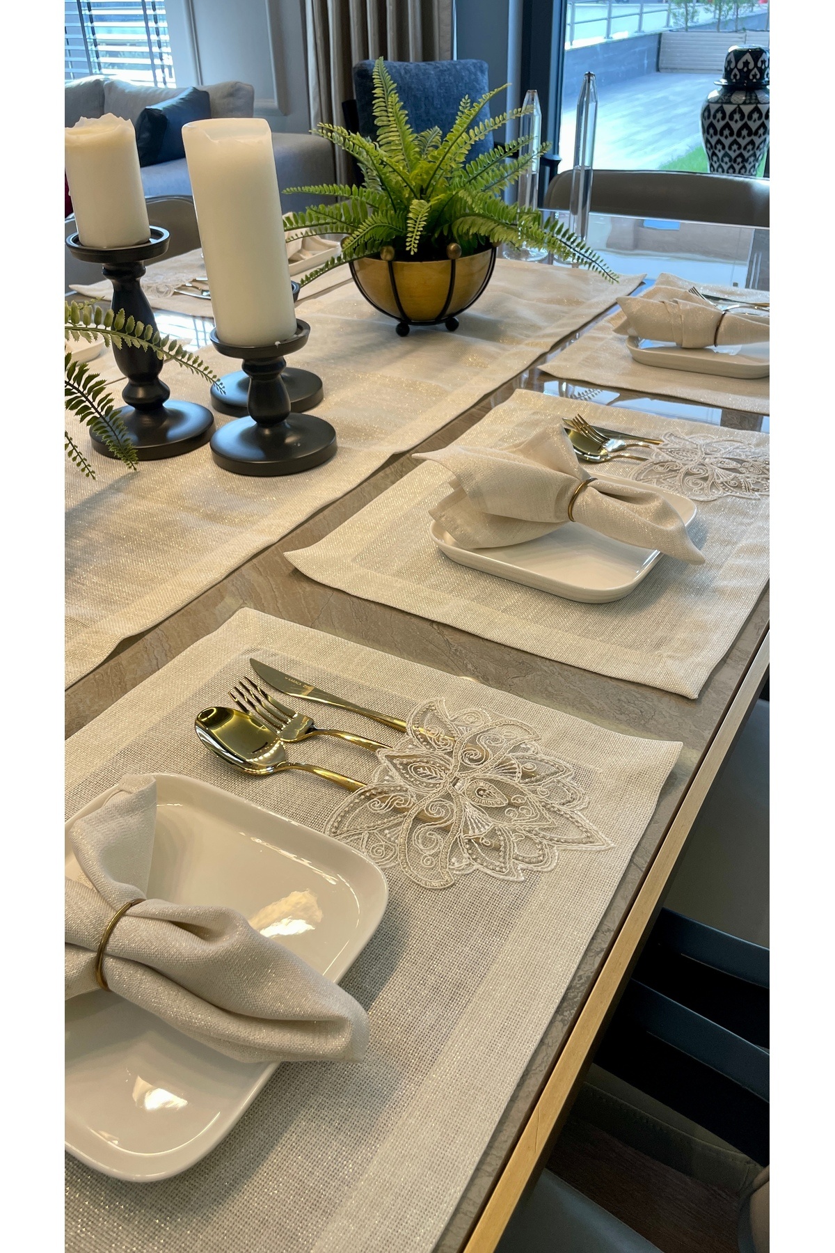25 PARÇA 12 Kişilik Linen Fransız Dantelli Gold Simli Ekru Amerikan Servis Set Peçete Dahil 25 PARÇA 12 Kişilik Linen Fransız Dantelli Gold Simli Ekru Amerikan Servis Set Peçete Dahil Vdh9974-1 تک سایز