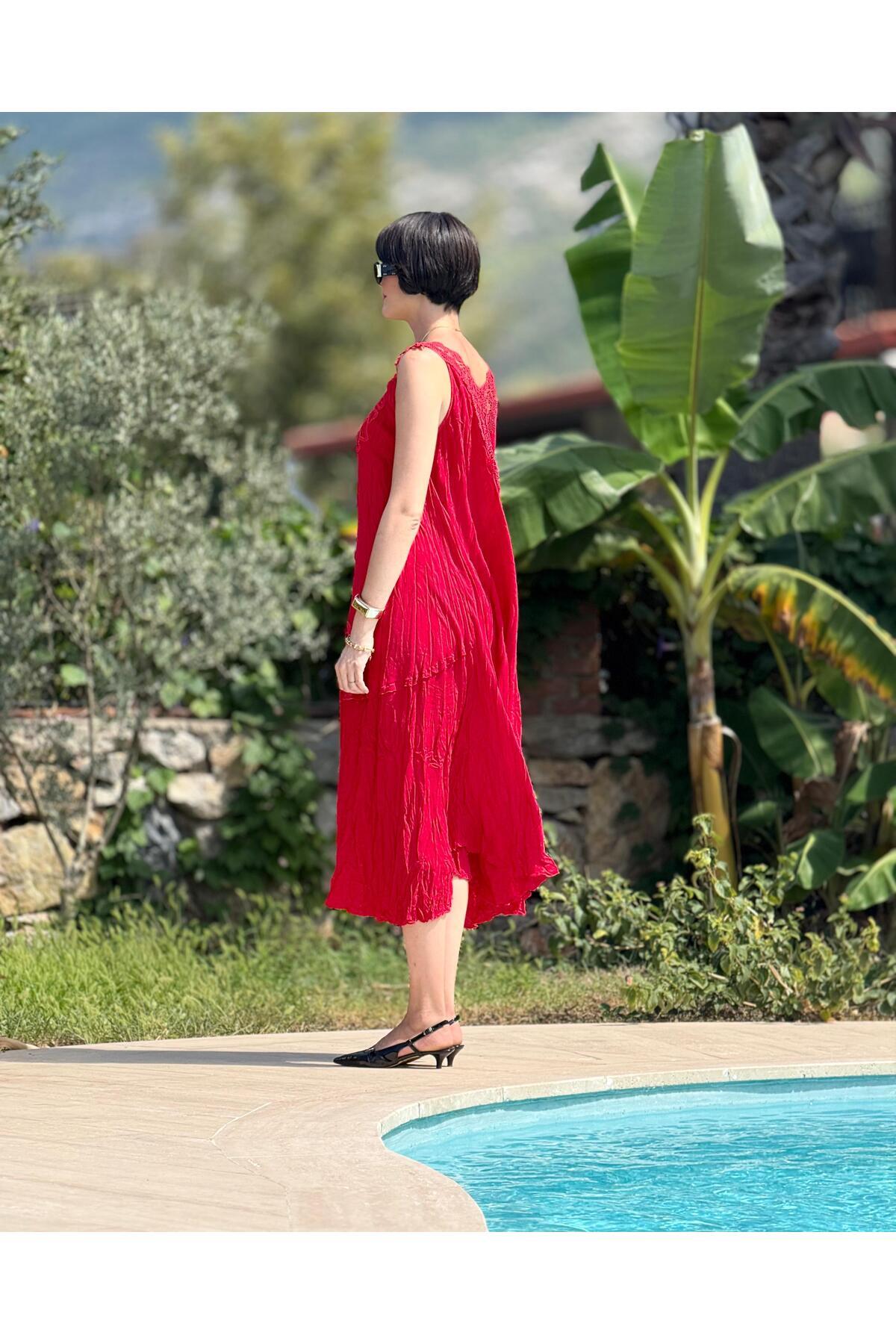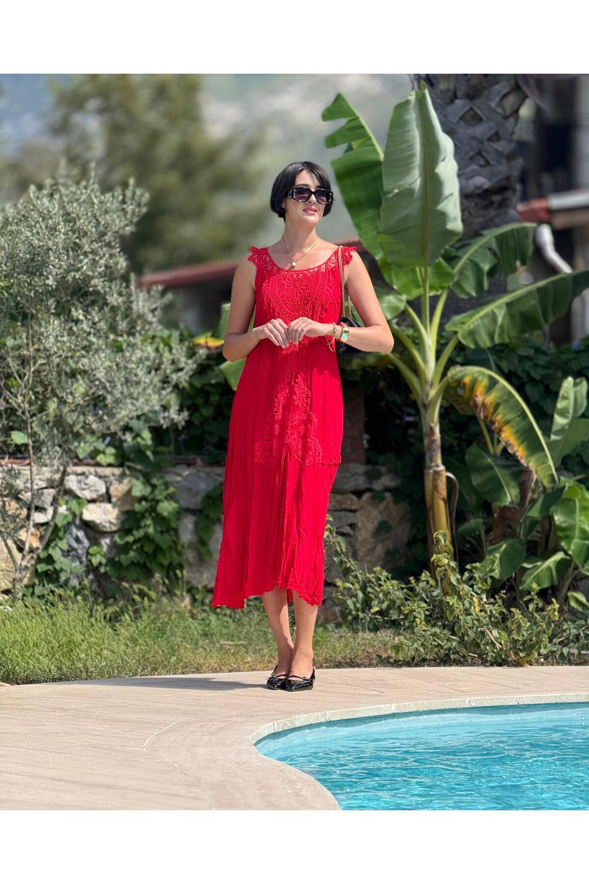 VL1046 Kolsuz Vual Elbise Kırmızı VL1046 Kolsuz Vual Elbise Kırmızı VL1046Kırmızı Standart