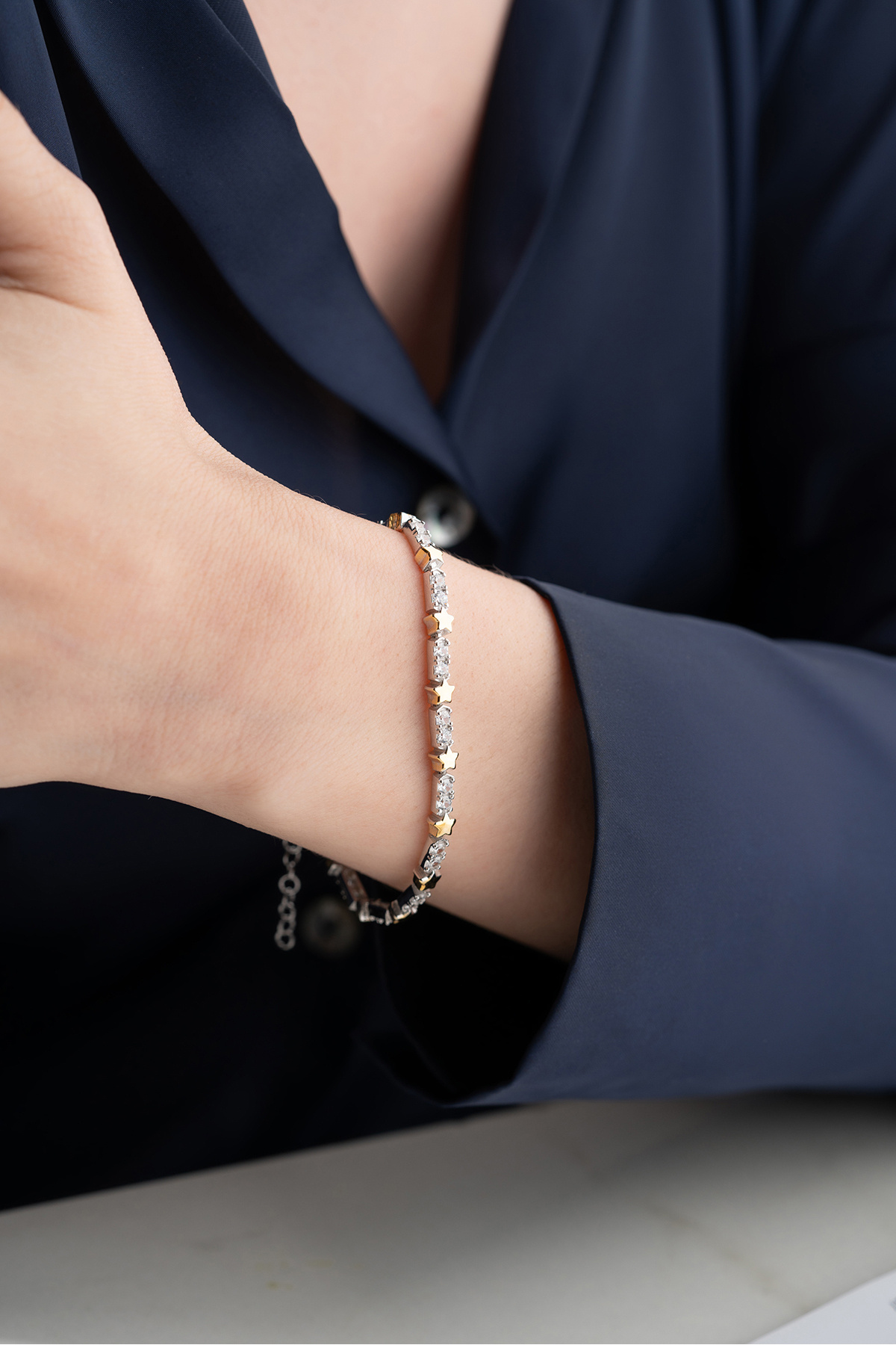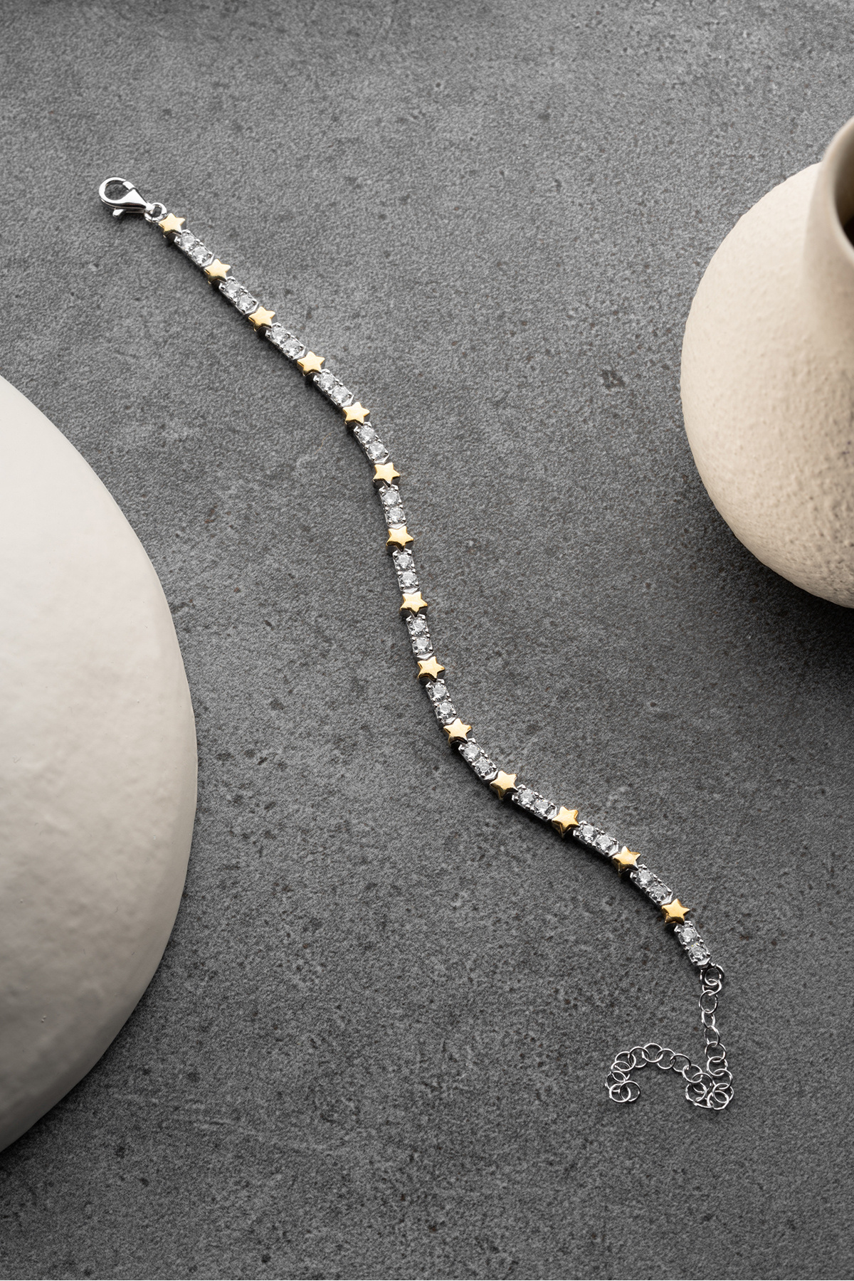925 Ayar Gümüş Yıldızlı Trend Bileklik 925 Ayar Gümüş Yıldızlı Trend Bileklik BLK00013 تک سایز