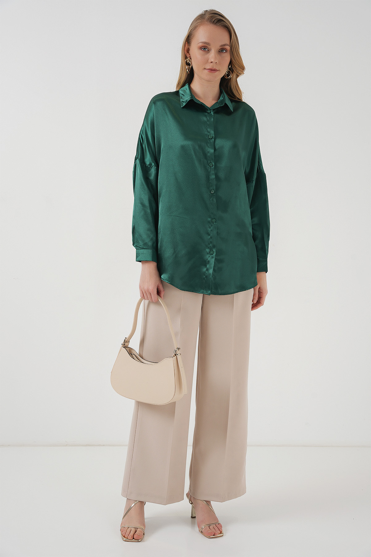 3985 Oversize Saten Gömlek - Zümrüt Yeşili 3985 Oversize Saten Gömlek - Zümrüt Yeşili 3985BGD19 44