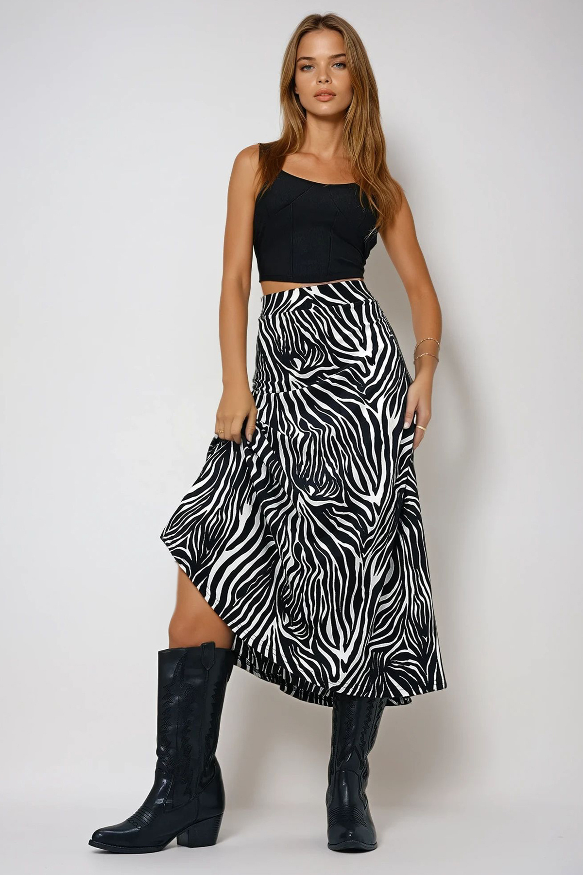 Kadın Ekru Siyah Beli Lastikli Süet Dokulu Desenli Uzun Etek Kadın Ekru Siyah Beli Lastikli Süet Dokulu Desenli Uzun Etek PRMX13182 2XL