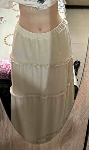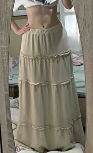 Yüksek Bel Katlı Fırfırlı Beli Lastikli Midi Etek Bürümcük Yüksek Bel Katlı Fırfırlı Beli Lastikli Midi Etek Bürümcük 5SAL70034IK L