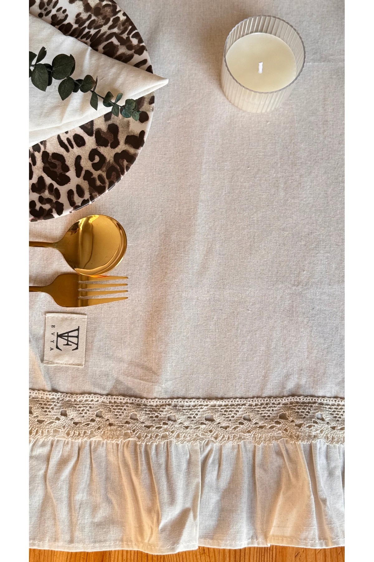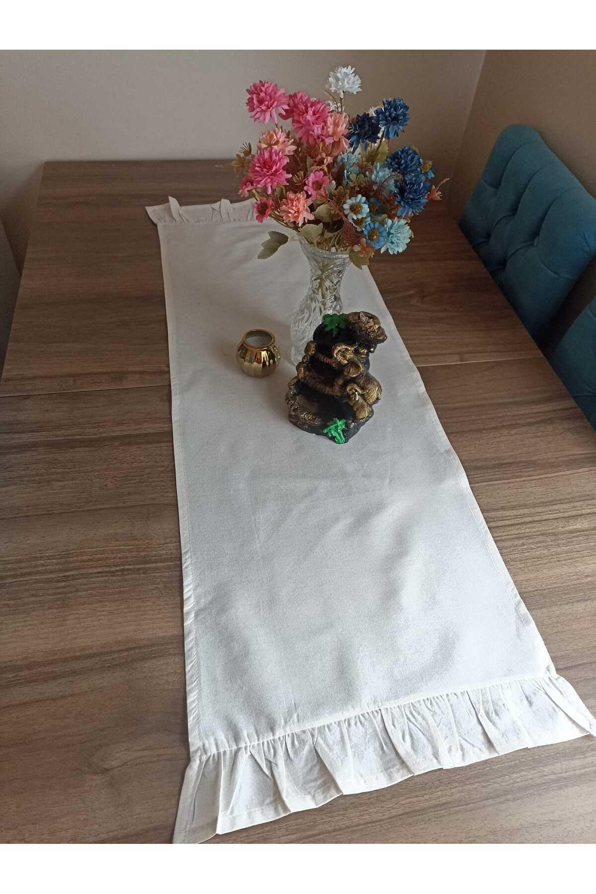 %100 Pamuklu Ham Keten Kenarları Fırfırlı Pamuk Dantelli Vintage Runner 40x110 cm %100 Pamuklu Ham Keten Kenarları Fırfırlı Pamuk Dantelli Vintage Runner 40x110 cm EVYATFR00020 تک سایز