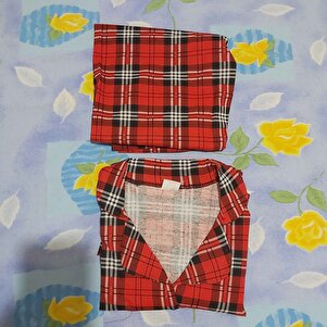 Pamuklu Düğmeli Ekose Baskılı Gömlek Yakalı Pijama Takım 3B Pamuklu Düğmeli Ekose Baskılı Gömlek Yakalı Pijama Takım 3B 8001 2XL