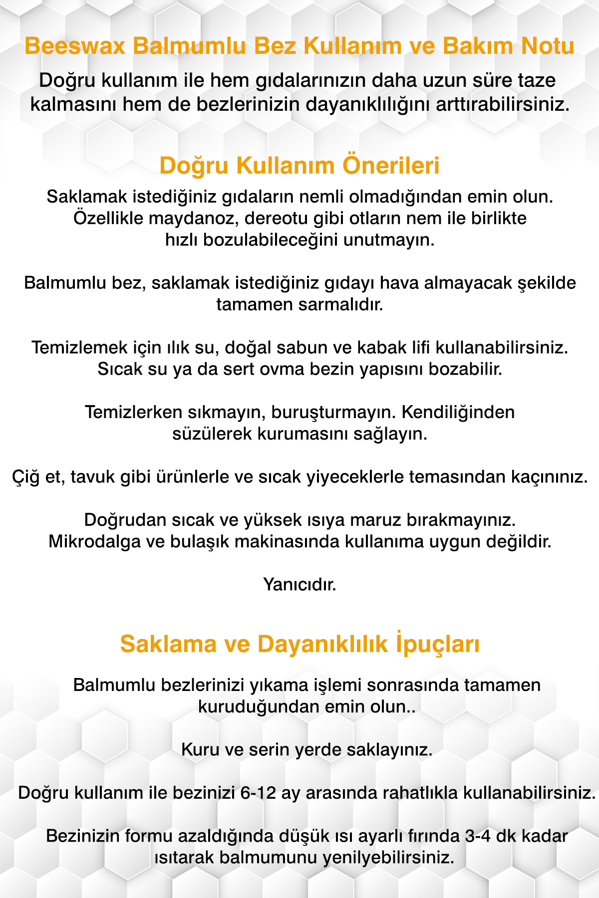 - Bakım Talimatları (Gıda Temas) : Ürünün kullanım ömrünü korumak için ürüne özel bakım talimatlarını takip ediniz.