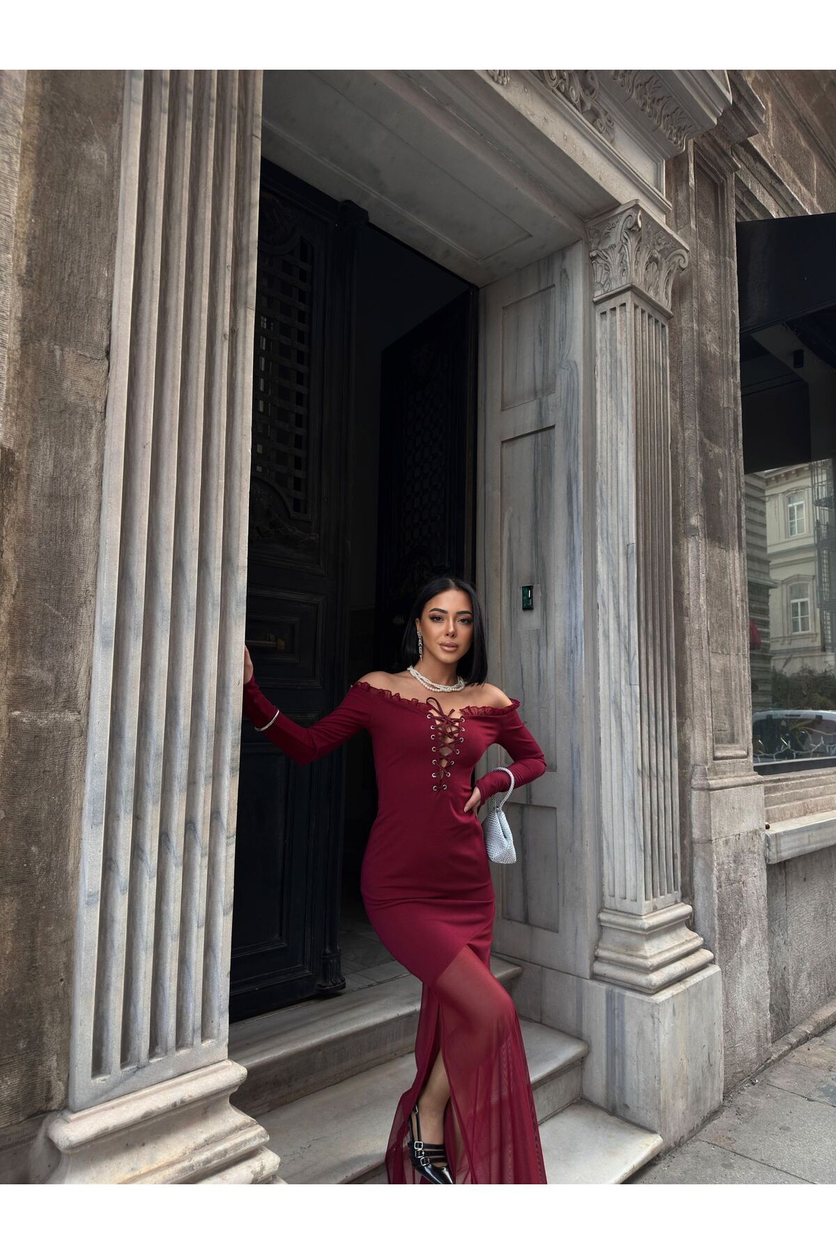 Fırfırlı Omuza Düşük Yaka Kuşgözlü Bağcıklı Kol Ağzı Üçgen Uzun Kol Asimetrik Kesim Krep Tül Elbise Fırfırlı Omuza Düşük Yaka Kuşgözlü Bağcıklı Kol Ağzı Üçgen Uzun Kol Asimetrik Kesim Krep Tül Elbise aytenli0089 L