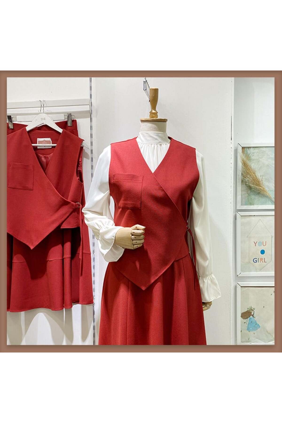 Kırmızı anvelop yelekli cep detaylı takım Kırmızı anvelop yelekli cep detaylı takım DXH1C22BDV 42