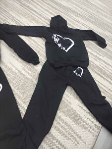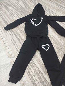 Siyah kız çocuk kalp baskılı kapüşonlu eşofman takımı alt üst takım Siyah kız çocuk kalp baskılı kapüşonlu eşofman takımı alt üst takım nvz2010 5-6 Yaş