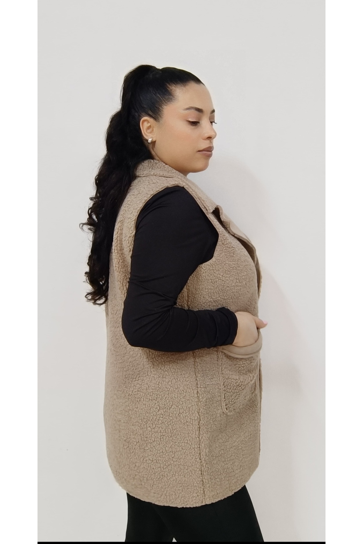 BÜYÜK BEDEN BUKLET KUMAŞ TEK DÜĞMELİ 75 CM İDEAL BOYDA YAKALI HAFİF KADIN YELEK BÜYÜK BEDEN BUKLET KUMAŞ TEK DÜĞMELİ 75 CM İDEAL BOYDA YAKALI HAFİF KADIN YELEK BBO-Y1235 44-46
