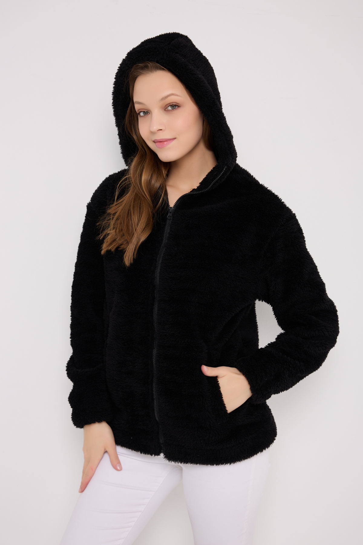 Kadın Siyah Peluş Rüzgar Geçirmez Welsoft Çift Cepli Kışlık Mont Kaban Kadın Siyah Peluş Rüzgar Geçirmez Welsoft Çift Cepli Kışlık Mont Kaban RYS-FMK-10 PELUŞ XL