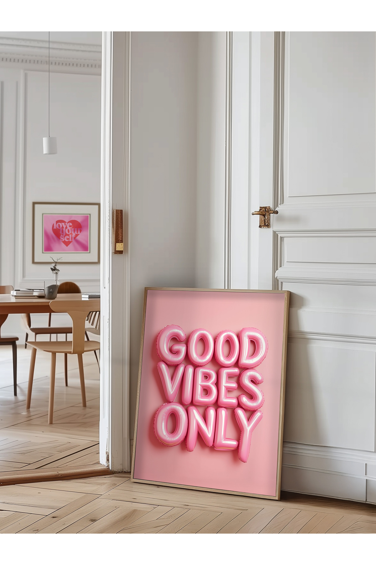 Good Vibes Only balonlu modern ahşap çerçeveli pembe tablo yuna53 Good Vibes Only balonlu modern ahşap çerçeveli pembe tablo yuna53 50 x 70