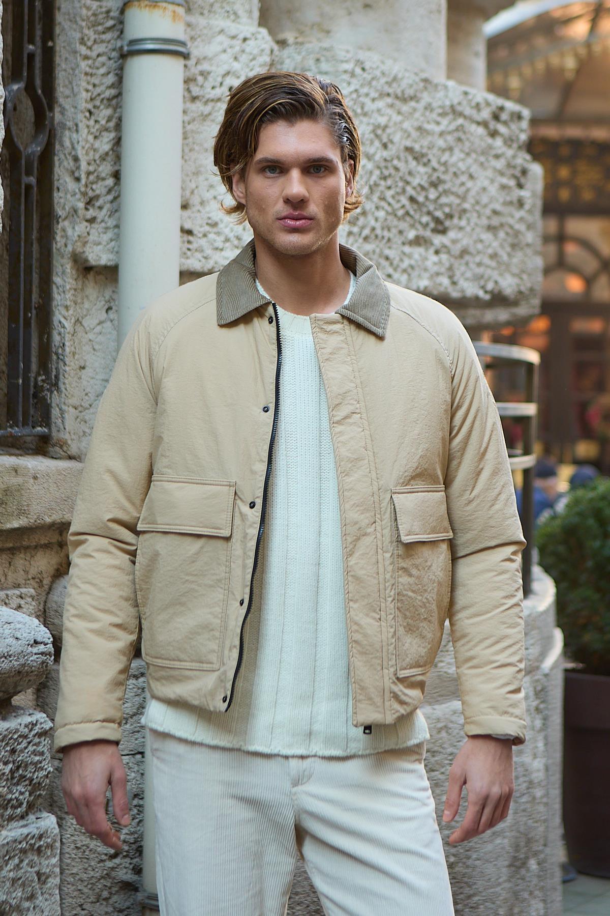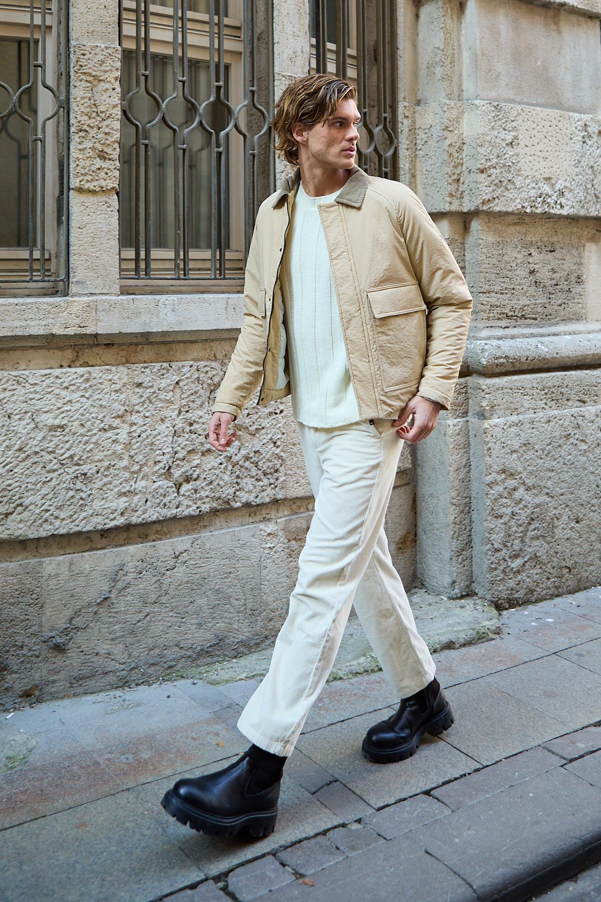 Kontrast Yakalı Su Geçirmez Kapitone Bej Ceket Mont Kontrast Yakalı Su Geçirmez Kapitone Bej Ceket Mont 4012DNGR XL