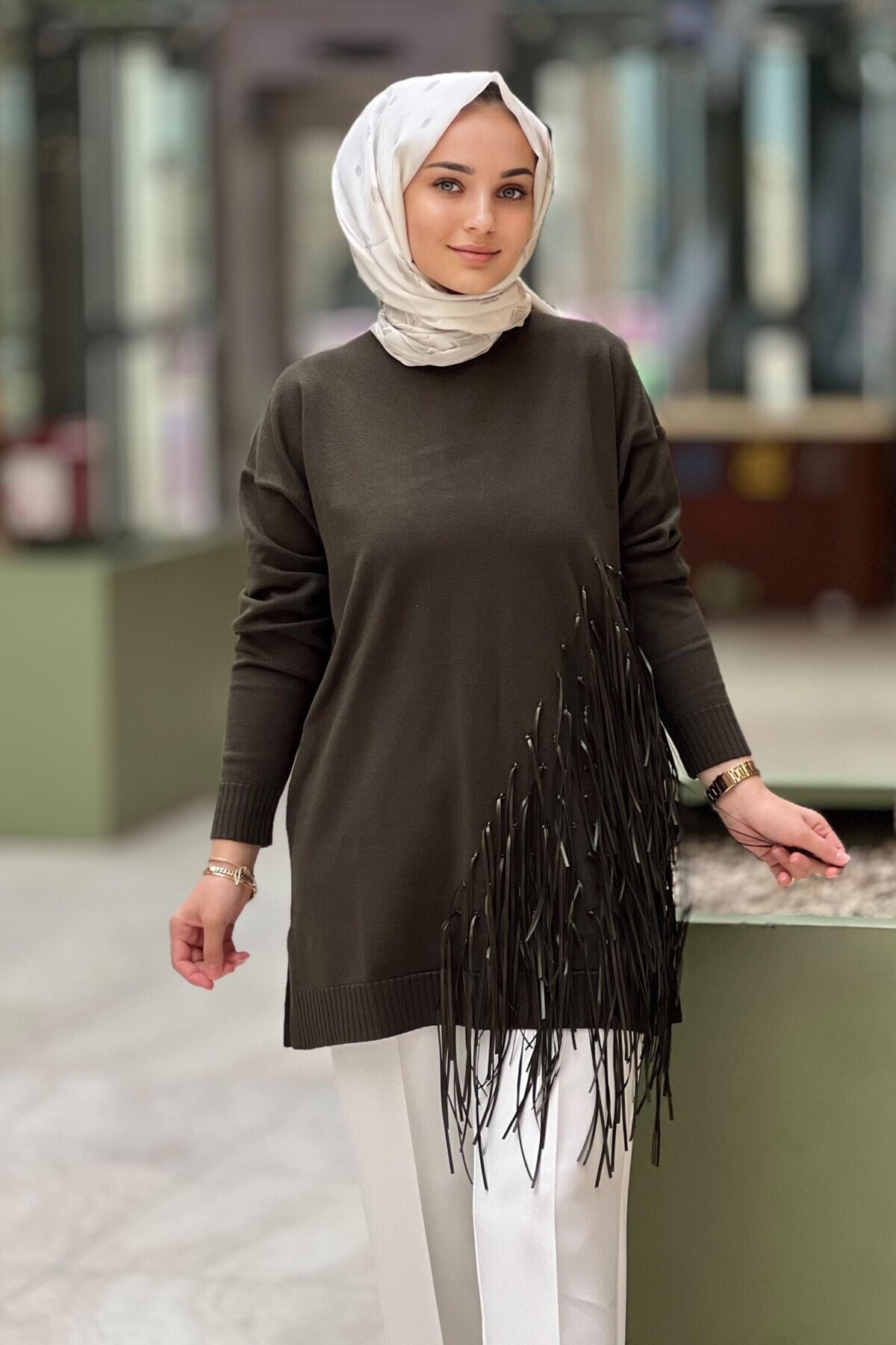 KADIN DESENLİ İNCİ TAŞ İŞLEMELİ YIRTMAÇ DETAYLI MERSERİZE TUNİK KADIN DESENLİ İNCİ TAŞ İŞLEMELİ YIRTMAÇ DETAYLI MERSERİZE TUNİK SRN-5 Standart