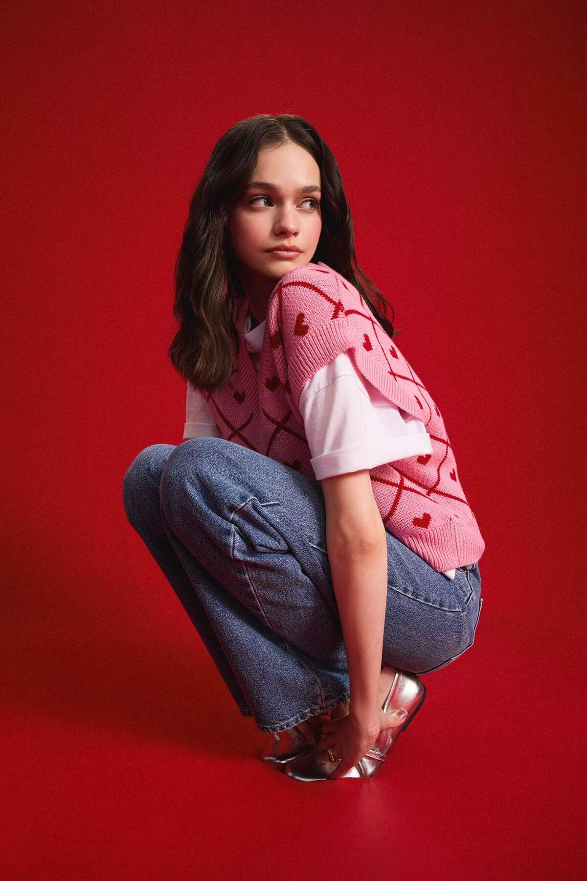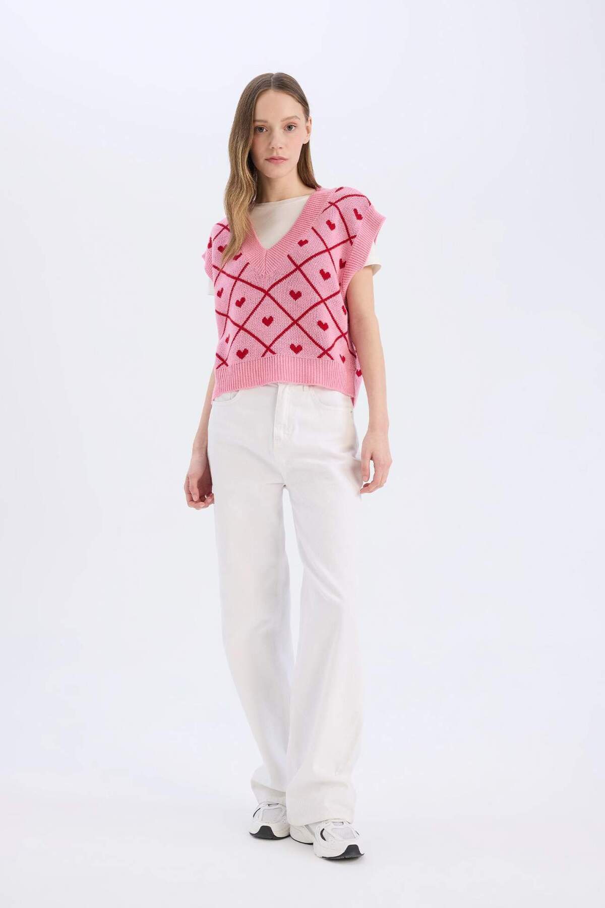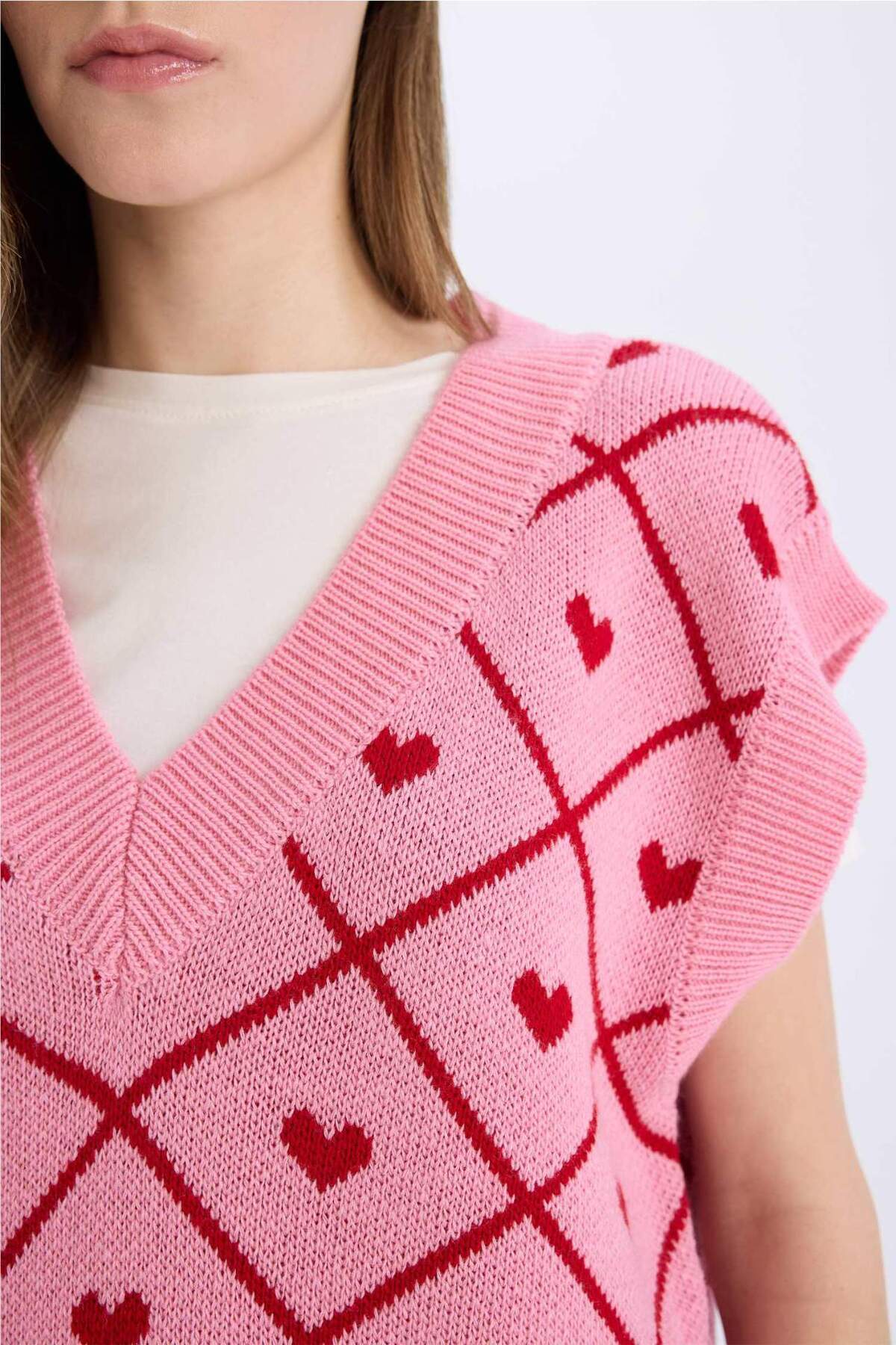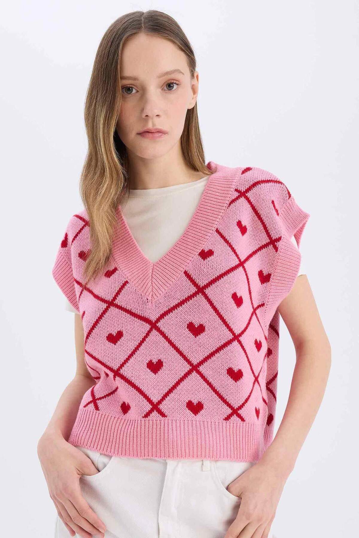 Coool V Yaka Kalp Desenli Triko Süveter W6775AZ25SP Coool V Yaka Kalp Desenli Triko Süveter W6775AZ25SP L