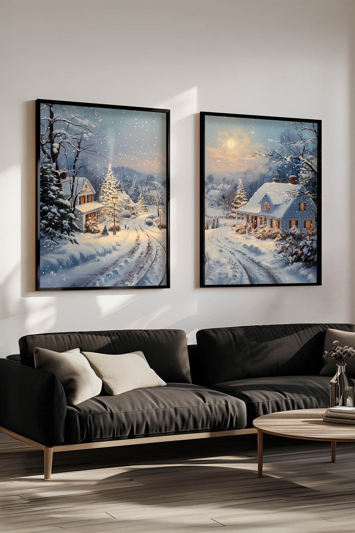 Yağlıboya efektli kış manzaralı tablo, vintage ahşap çerçeveli 2'li tablo, yağlıboya tablo yuna56 Yağlıboya efektli kış manzaralı tablo, vintage ahşap çerçeveli 2'li tablo, yağlıboya tablo yuna56 50 x 70