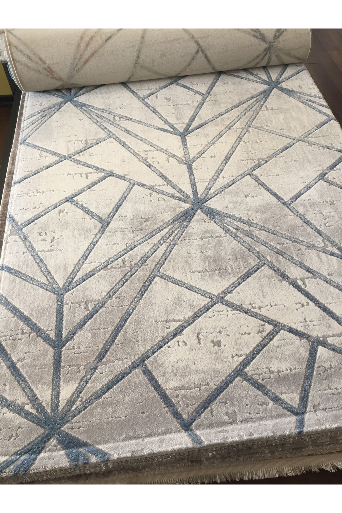 Mavi krem ipekli yün kalın salon halısı Mavi krem ipekli yün kalın salon halısı kakak7272a 199 x 301