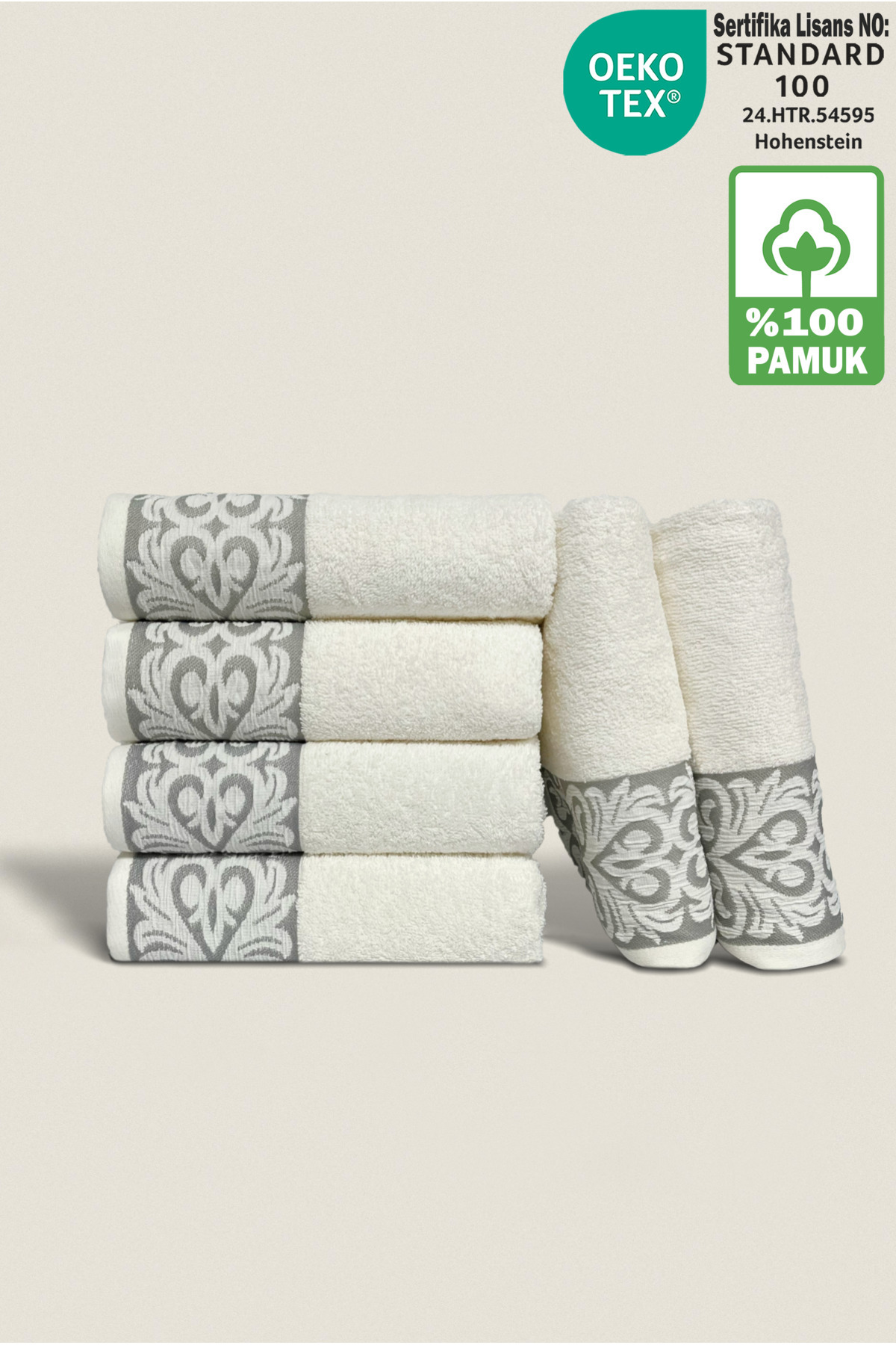 5'li Havlu Seti %100 Pamuk Sertifikalı, El Yüz Mutfak Havlusu Takım Elmas Desen Bordür Beyaz 50x80cm 5'li Havlu Seti %100 Pamuk Sertifikalı, El Yüz Mutfak Havlusu Takım Elmas Desen Bordür Beyaz 50x80cm DZELHVST5P5801 تک سایز