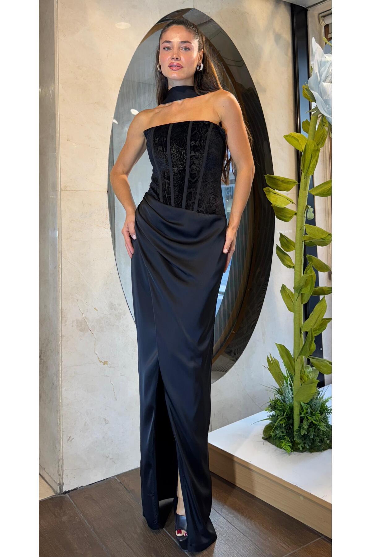 Melissa Dantel Saten Straplez Koyu Kırmızı Gece Elbisesi Melissa Dantel Saten Straplez Koyu Kırmızı Gece Elbisesi 6108 44