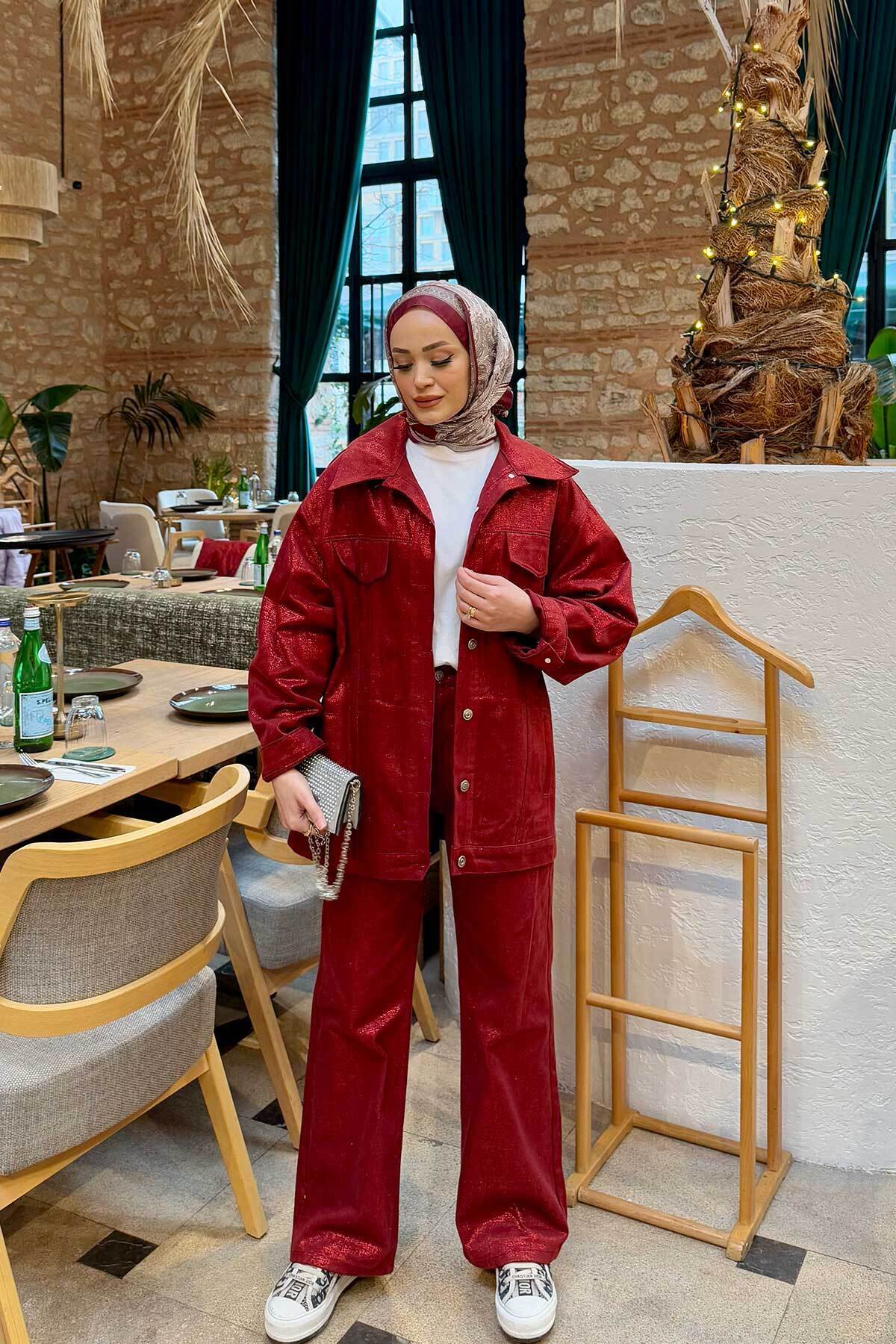 BORDO Bol Paça Varaklı Gabardin Pantolon 32-3501 BORDO Bol Paça Varaklı Gabardin Pantolon 32-3501 P-03816 42