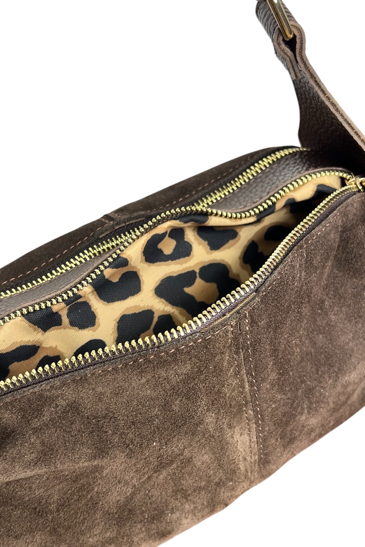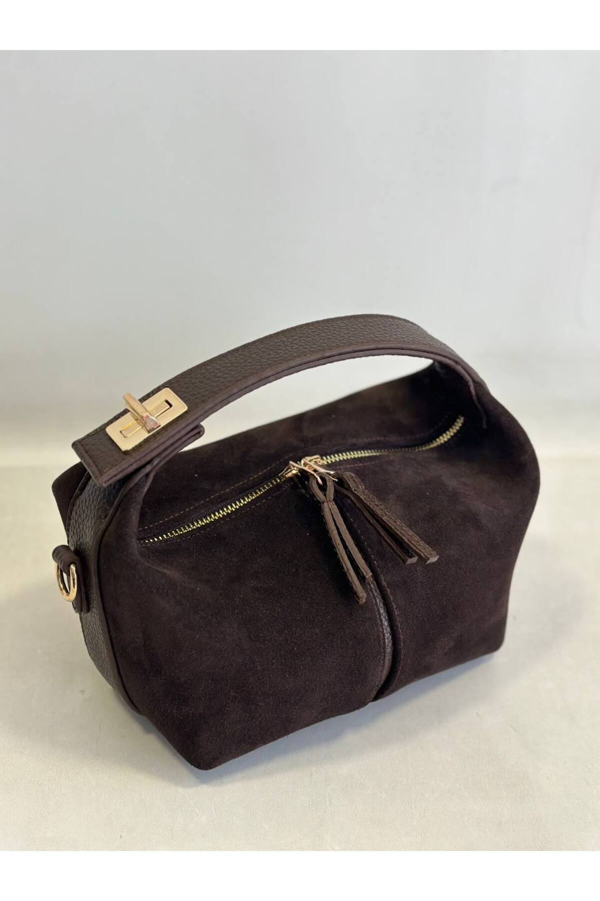 Kadın Koyu Kahverengi Gerçek Süet Deri Yan Cep Detaylı Fermuarlı Omuz Çantası Kadın Koyu Kahverengi Gerçek Süet Deri Yan Cep Detaylı Fermuarlı Omuz Çantası MMDV593 Orta Boy