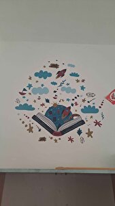 çocuk odası sticker çocuk odası sticker kitap uzay roket ve bulutlar 65 x 70