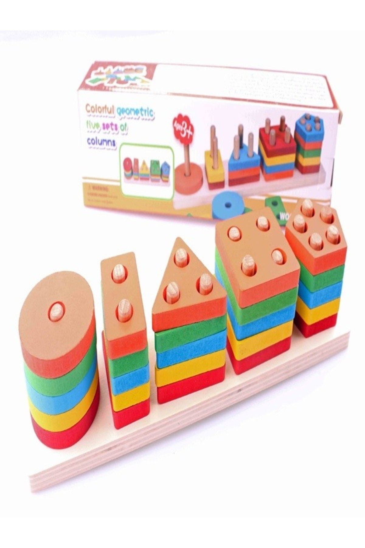 Renkli Geometrik Beş Sütun Seti - Eğitici Oyuncaklar Renkli Geometrik Beş Sütun Seti - Eğitici Oyuncaklar YY-7424-PSJDNL تک سایز