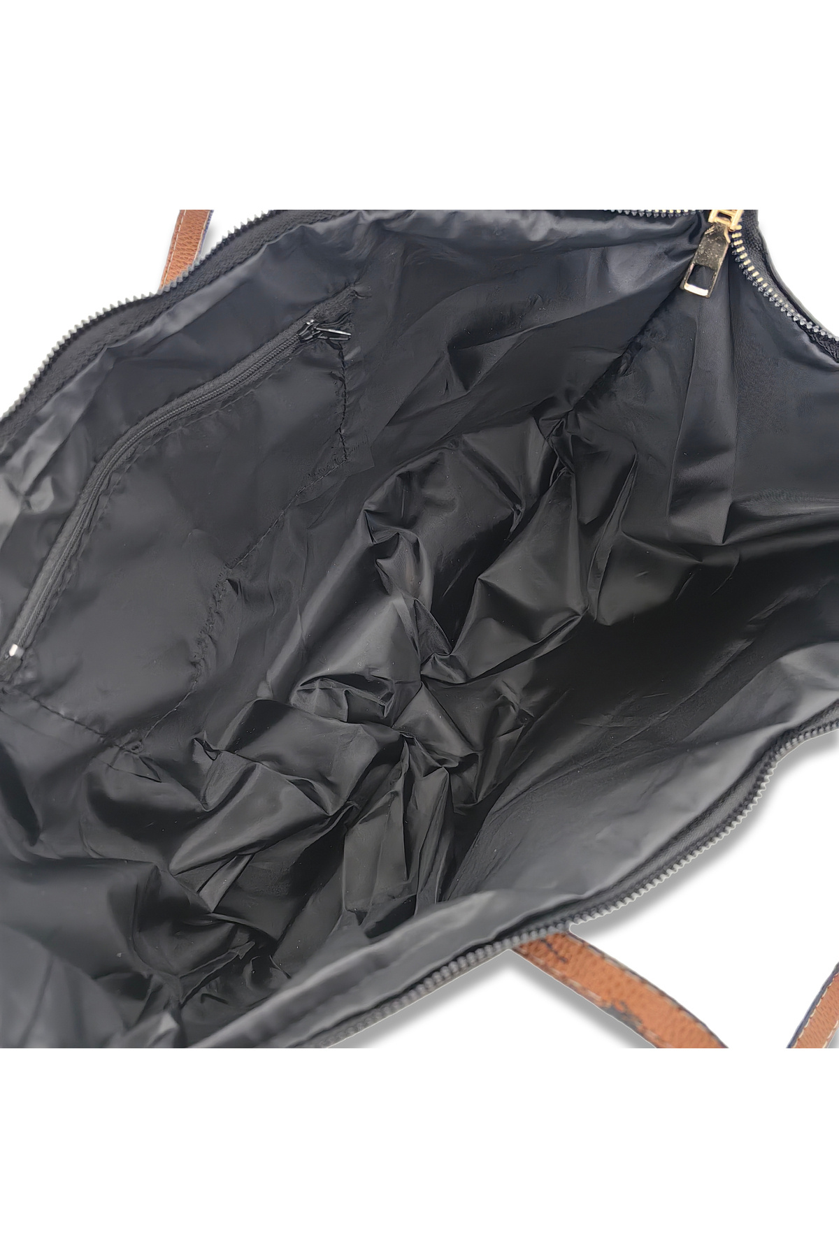 Siyah Kumaş Gövdeli Deri Saplı Tek Bölmeli 2 Cepli Fermuar Kapamalı 2 Saplı Omuz Çantası Siyah Kumaş Gövdeli Deri Saplı Tek Bölmeli 2 Cepli Fermuar Kapamalı 2 Saplı Omuz Çantası Nuba 1060 تک سایز