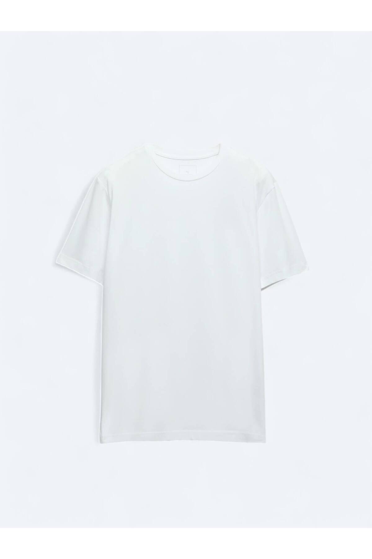 Beyaz Bisiklet Yaka Pamuk Karışımlı T-Shirt Beyaz Bisiklet Yaka Pamuk Karışımlı T-Shirt 10154911 4XL