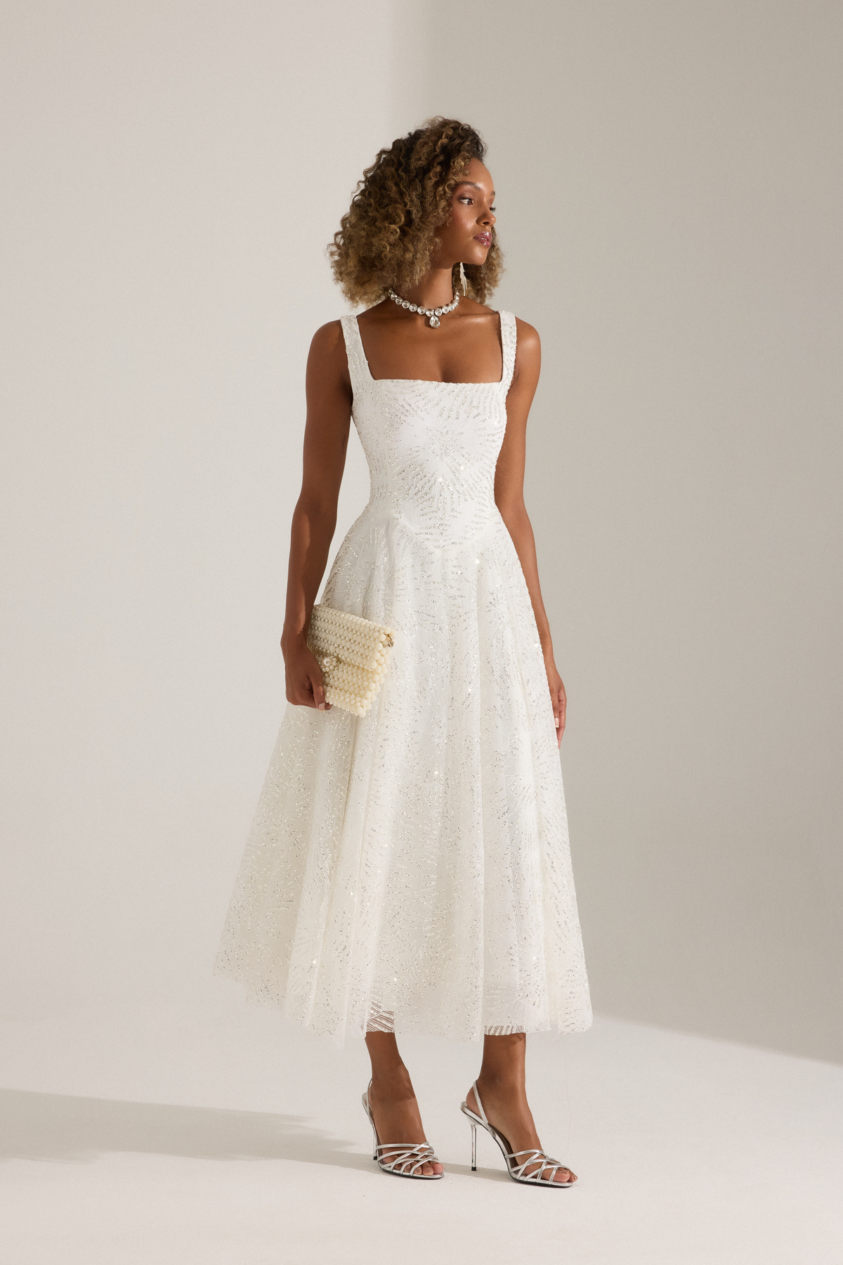 JUSTINA Işıltılı Askılı BEYAZ Mini Gece Elbisesi JUSTINA Işıltılı Askılı BEYAZ Mini Gece Elbisesi 6114 44
