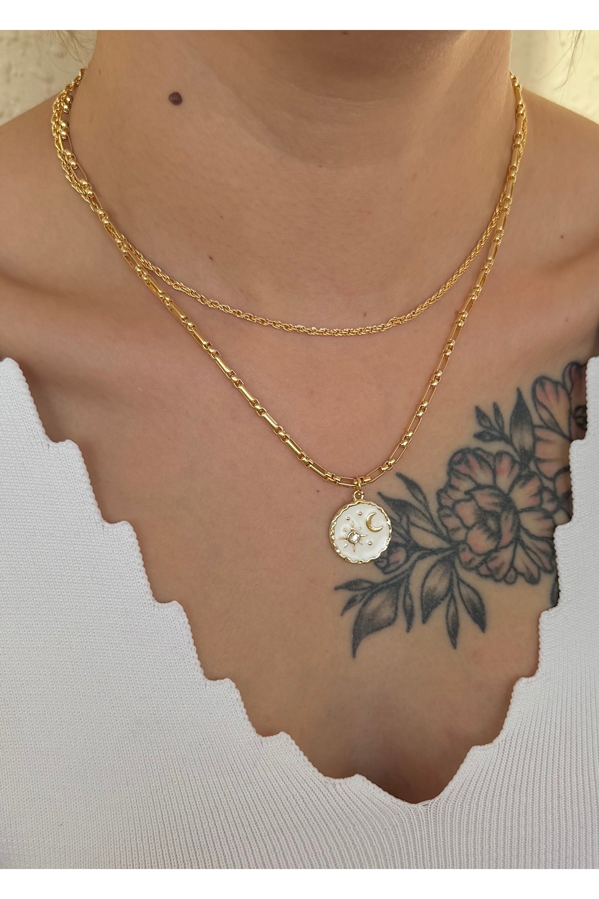 Ay figürlü zircon taşlı gold set kadın kolye Ay figürlü zircon taşlı gold set kadın kolye takı018960 تک سایز