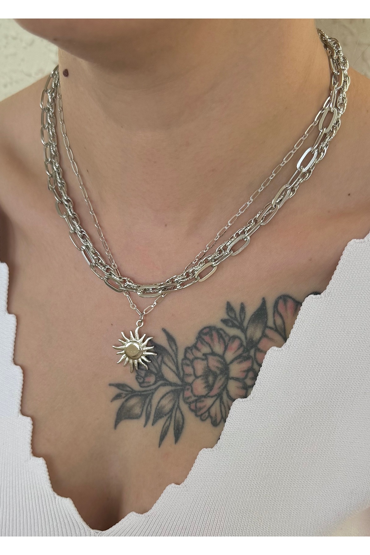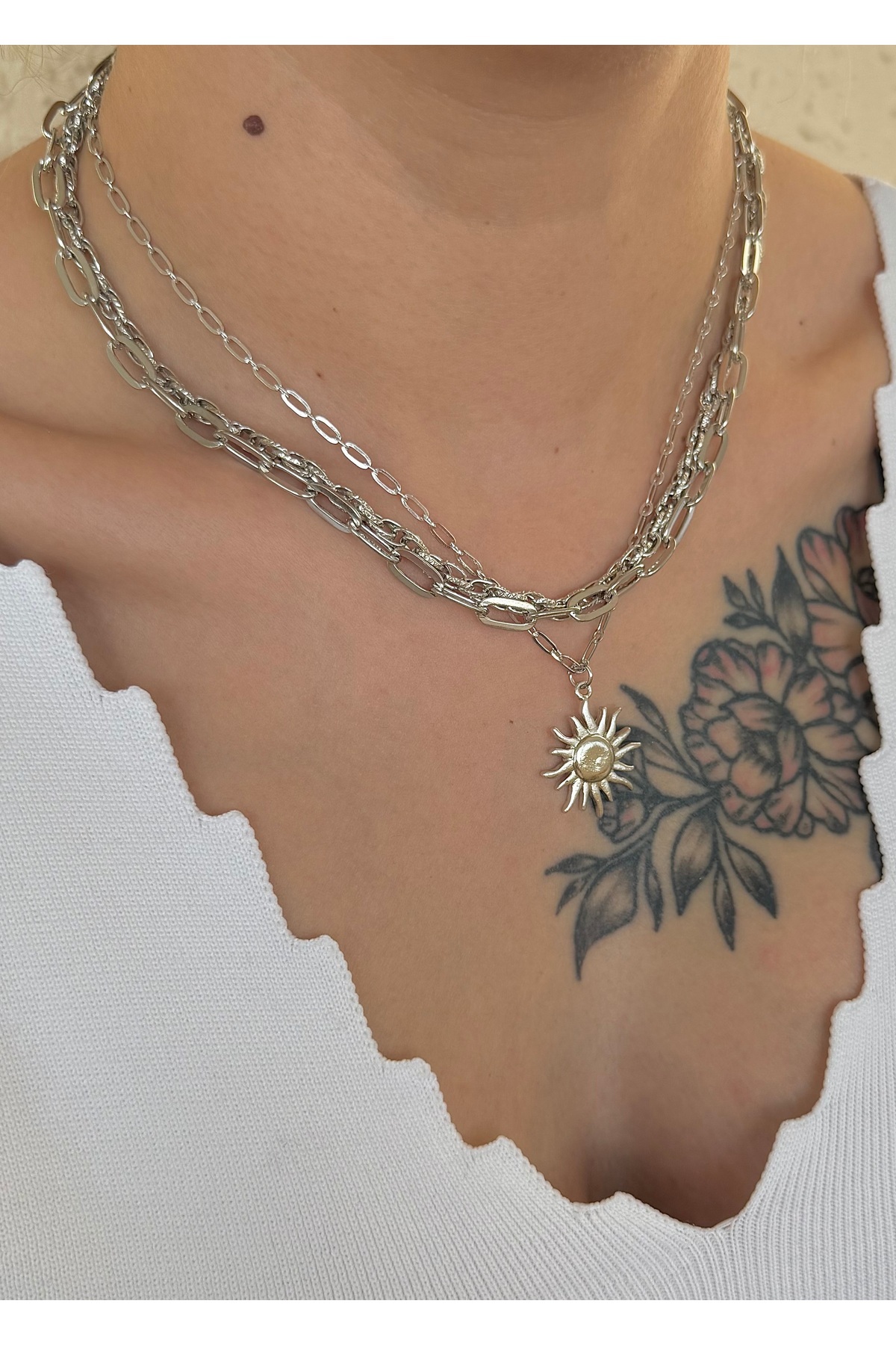 Güneş figürlü 3'lü kadın silver set kolye Güneş figürlü 3'lü kadın silver set kolye takı018965 تک سایز