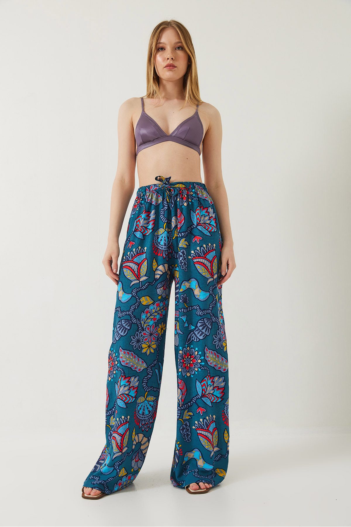 Kadın Bel Bağlamalı Desenli Viskon Pantolon 60261354 Kadın Bel Bağlamalı Desenli Viskon Pantolon 60261354 XL