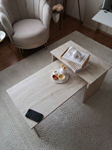 2'Li Orta sehpa | Salon Sehpası - Traverten 2'Li Orta sehpa | Salon Sehpası - Traverten ikorts تک سایز