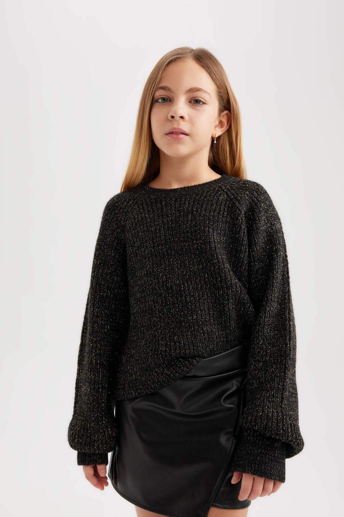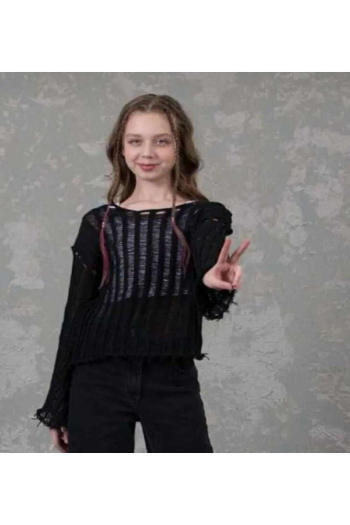 Kız Çocuk Crop Bisiklet Yaka Ajurlu Triko Kazak E4971A825SM Kız Çocuk Crop Bisiklet Yaka Ajurlu Triko Kazak E4971A825SM 13-14 Yaş