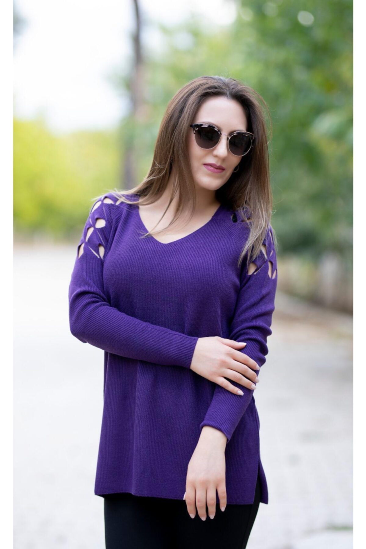 Kadın Mor İşleme Detaylı Kazak Kadın Mor İşleme Detaylı Kazak ÇKİDK XL