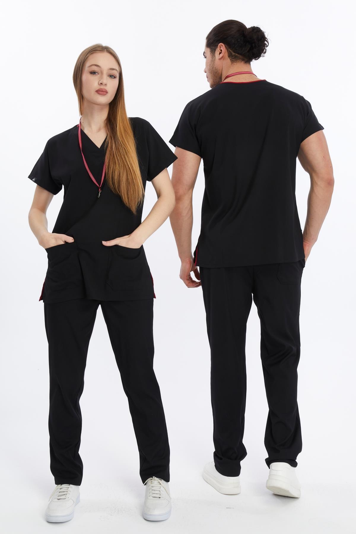Happiness Basic - Likralı Doktor Hemşire Forma Takımı Scrubs Üniforma Cerrahi Takım (UNISEX), Siyah Happiness Basic - Likralı Doktor Hemşire Forma Takımı Scrubs Üniforma Cerrahi Takım (UNISEX), Siyah CATI159 2XL