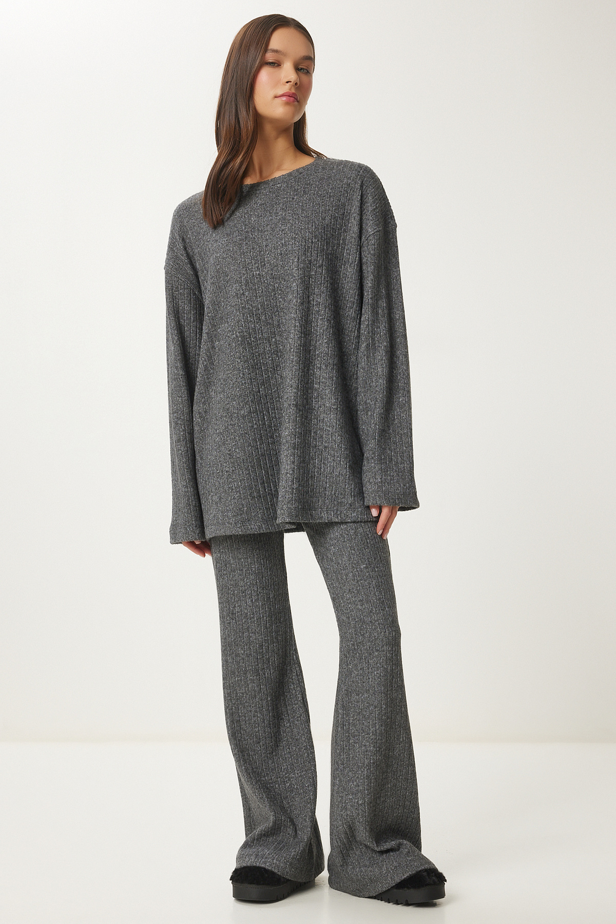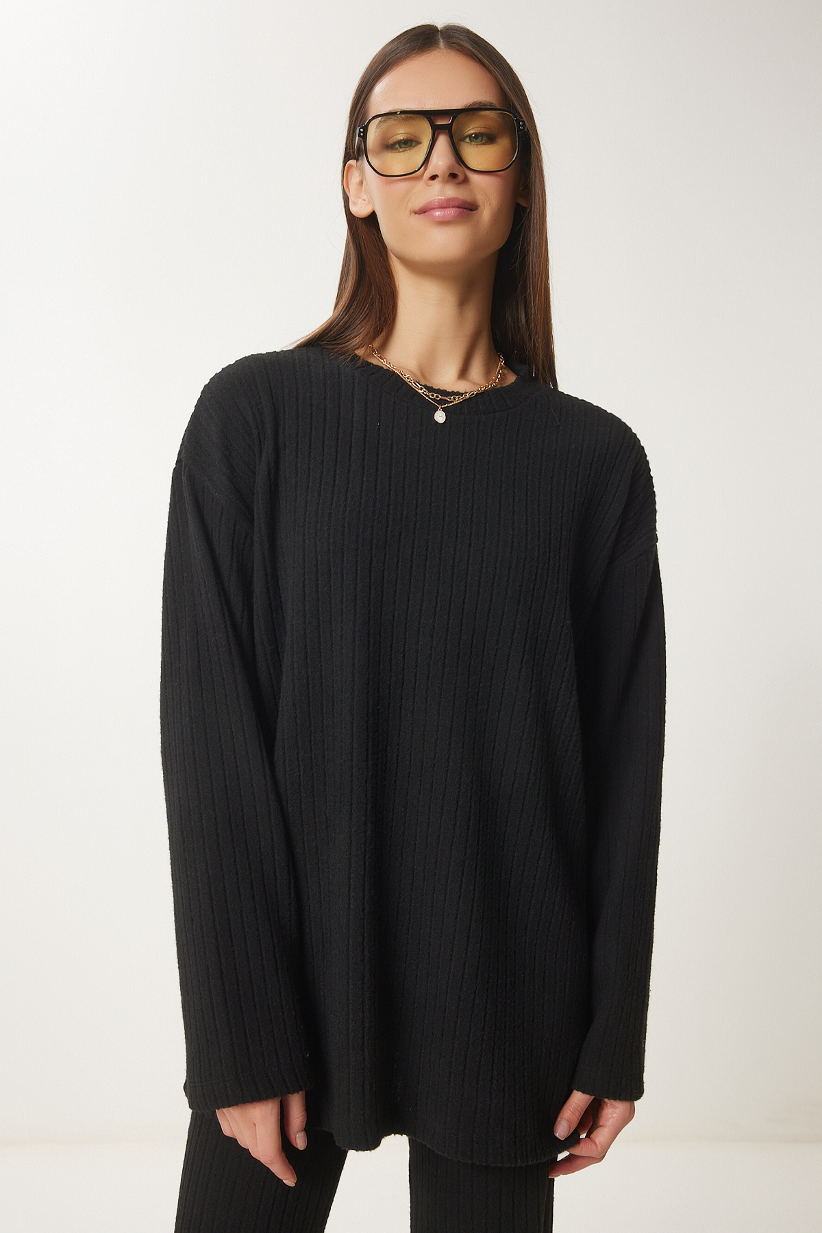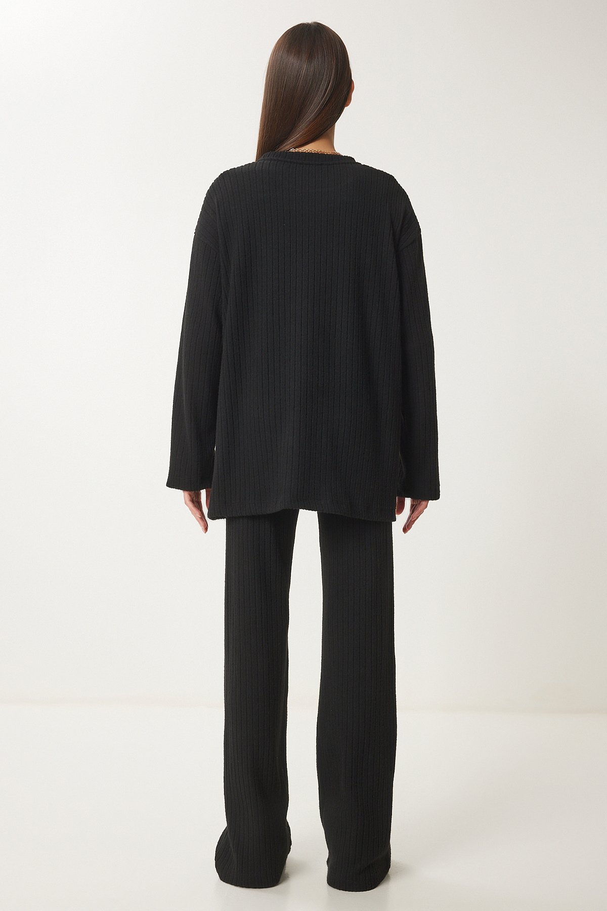 Rahat Fitilli Örme Bluz Pantolon Takım SİYAH LRG0014 Rahat Fitilli Örme Bluz Pantolon Takım SİYAH LRG0014 40