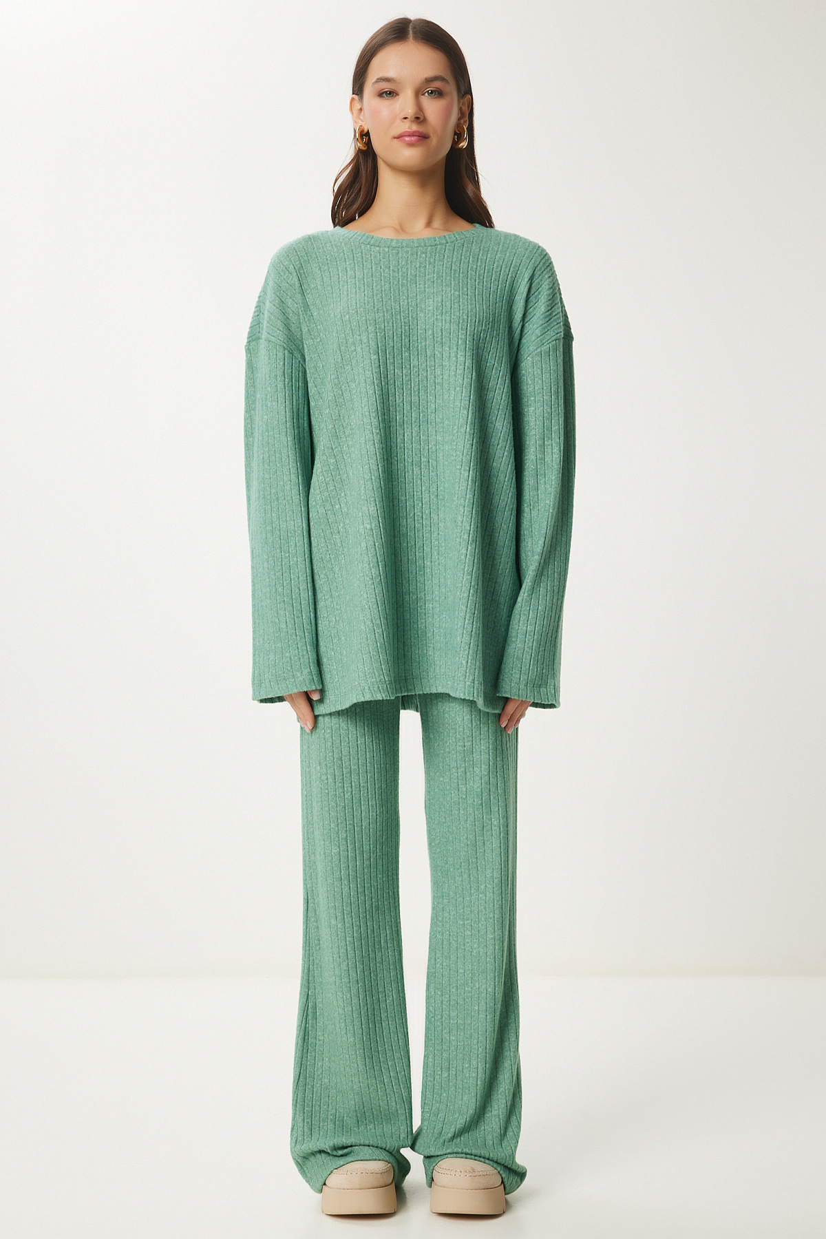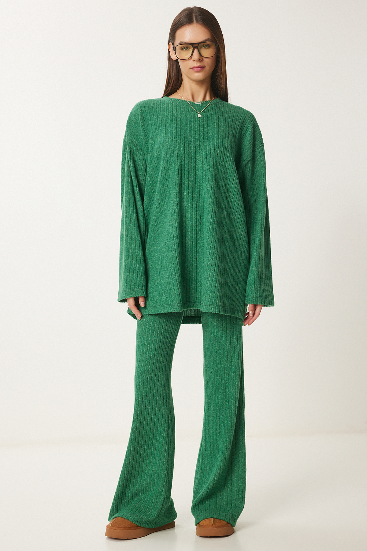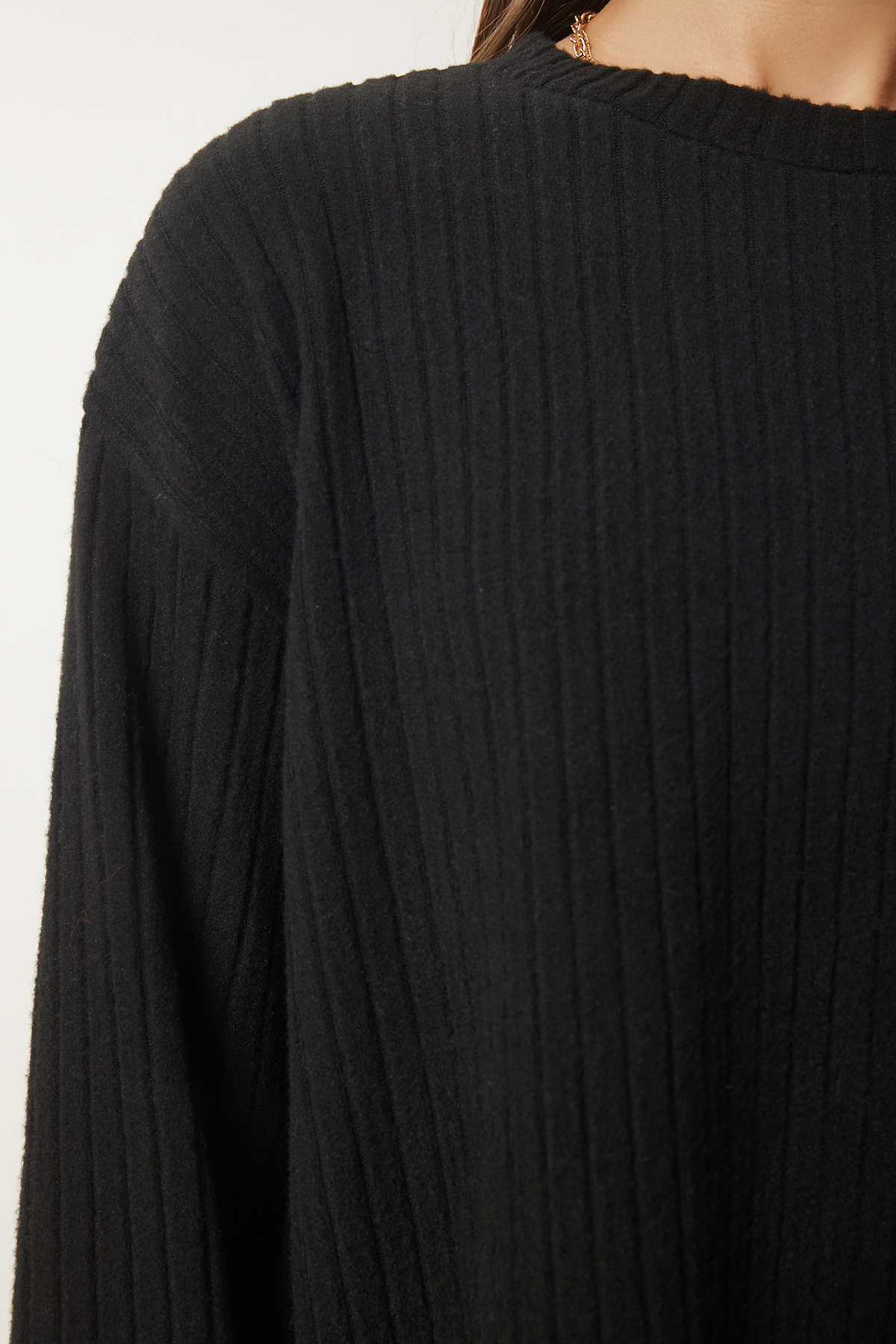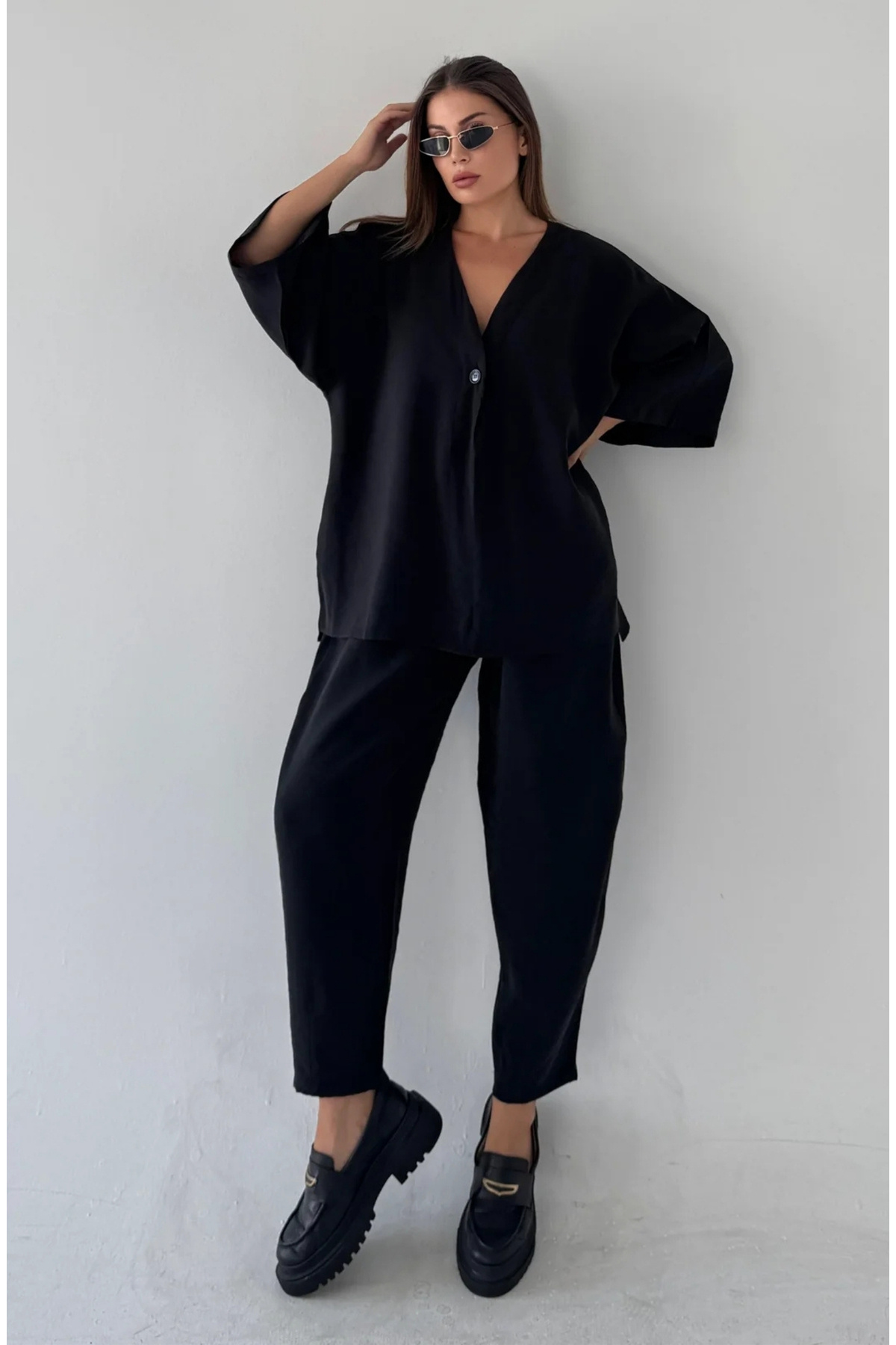 Rahat Fitilli Örme Bluz Pantolon Takım SİYAH LRG0014 Rahat Fitilli Örme Bluz Pantolon Takım SİYAH LRG0014 40